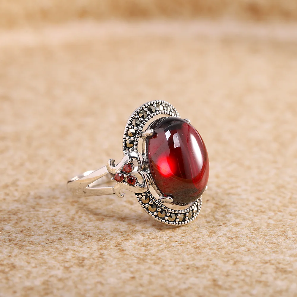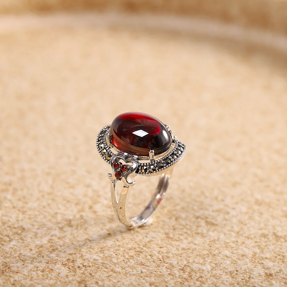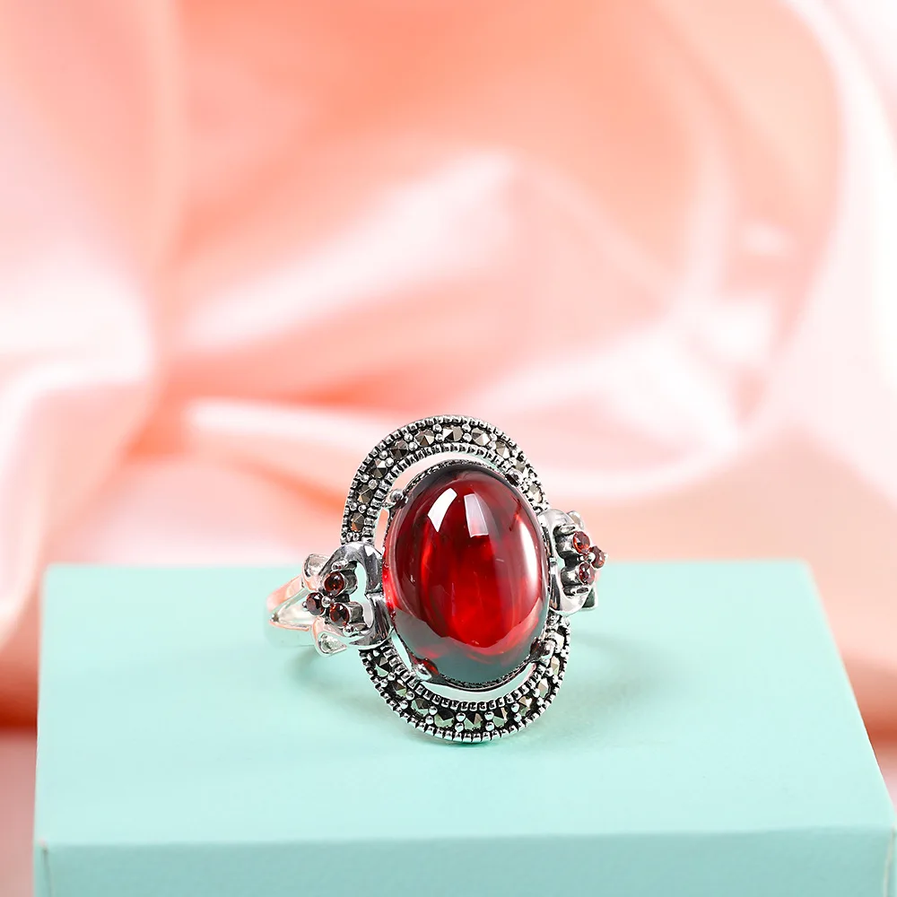 Кольцо женское из серебра 925 пробы, ручной работы, с гранатом