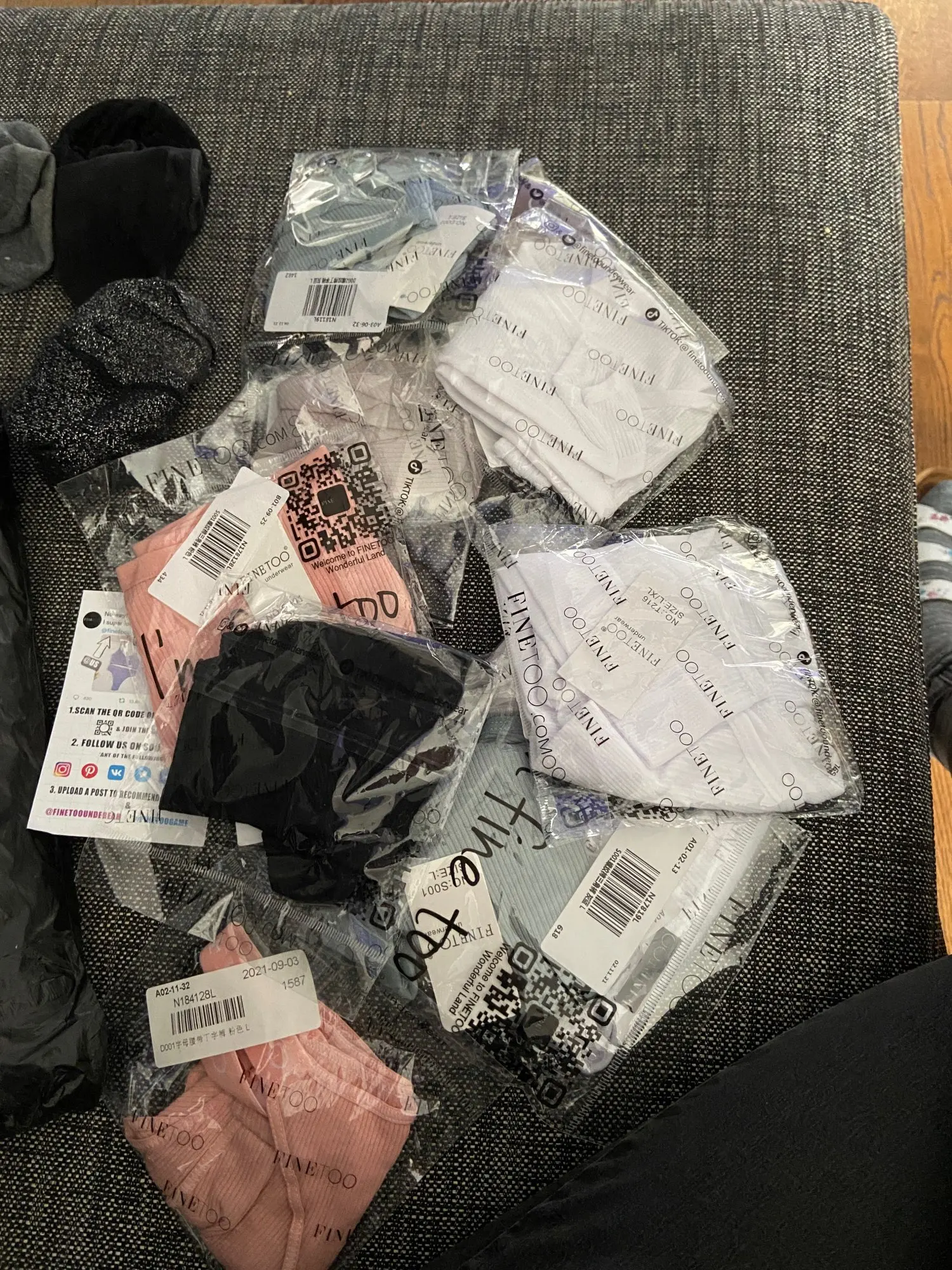 Заказывала много раз, довольна качеством, не садятся при стирке и не меняются при нОске. В этот раз на бежевом бюсте лямки немного странно пришиты, надеюсь не будет дискомфортно. На свои параметры ОГ 70, ОБ 91 всегда заказываю L-XL, тк комплекты очень маломерят