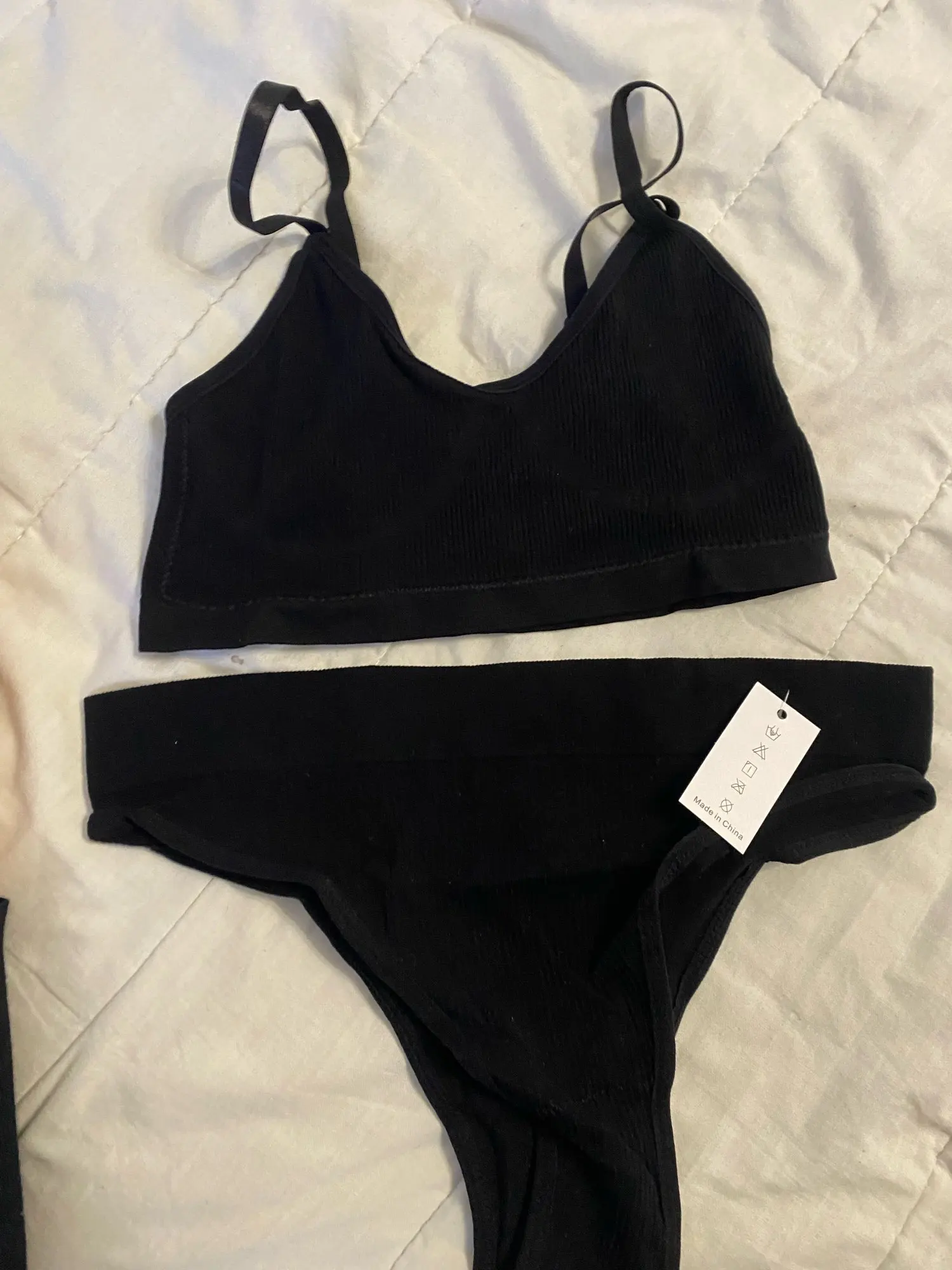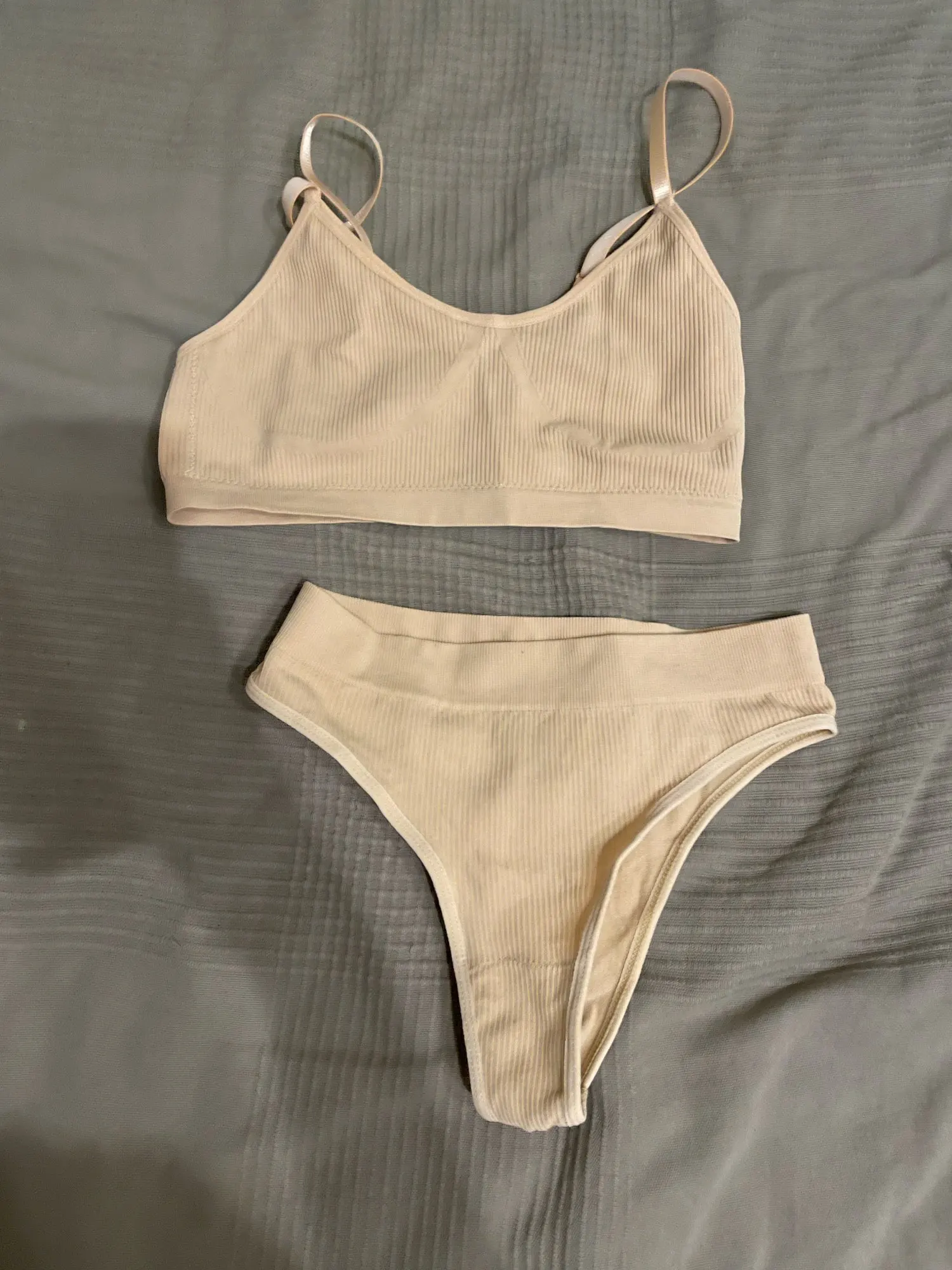 Доставка быстрая, комплект хороший ! Цвет соответствует фотографиям, комплект мягкий и приятный к телу . Немного торчат нитки сзади на топе, но это не очень заметно и не критично) . размер подошёл , брала s/m на свой размер ~80/60/85 . Спасибо продавцу )!