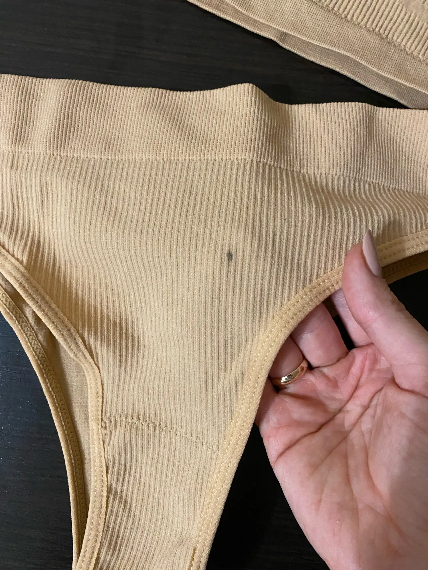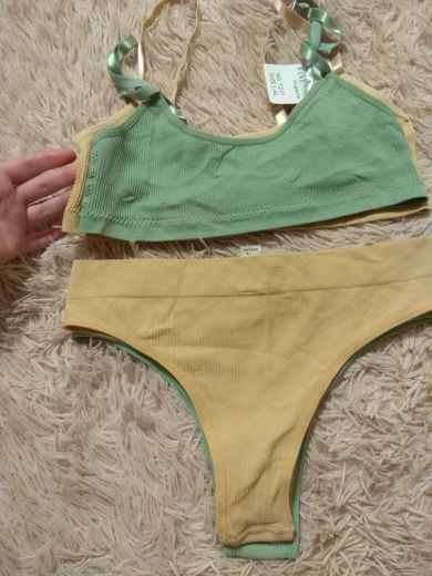 Очень красивый цвет. Комплект крутой, мягкая ткань, топ немного маловат, но это сама виновата. Трусики удобные. Качество высокое