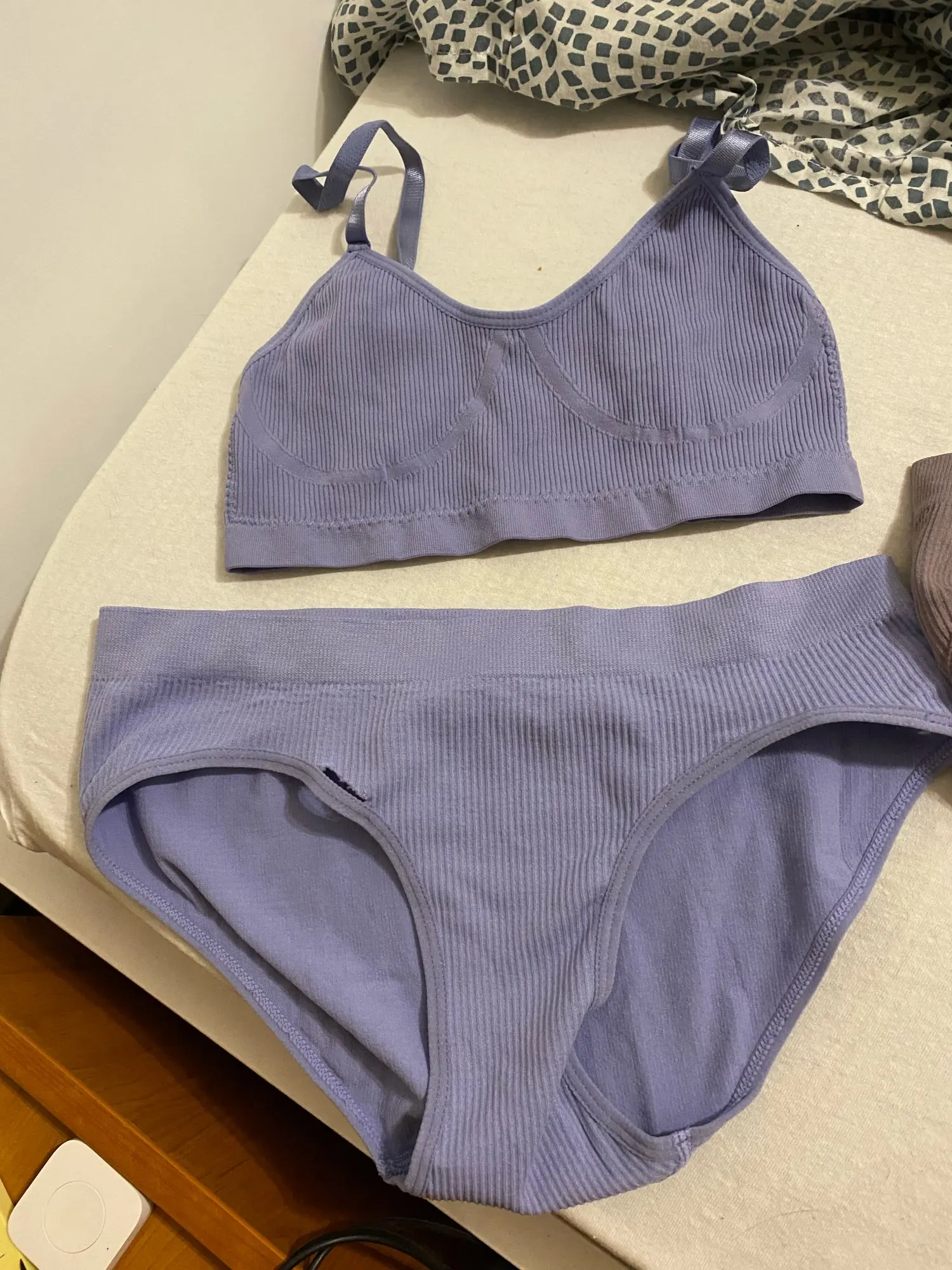 Цвет соответствует. Лиф кажется меньше, так что я бы предпочла размер больше. В трусиках хлопковая ластовица.