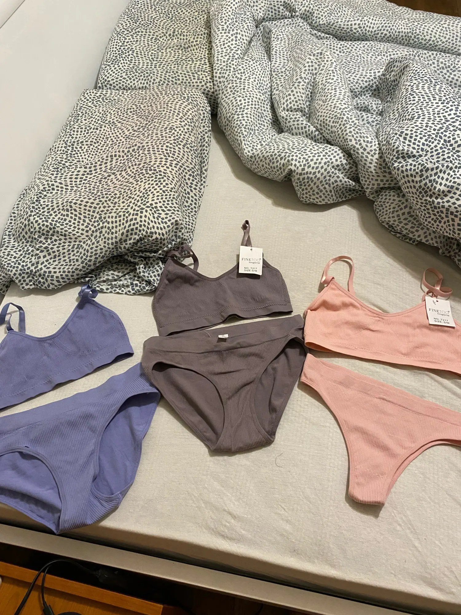 Комплект пришел в Беларусь за 19 дней. Заказывала размер s-m, сел идеально, нигде не давит. Мои параметры: грудь - 75см, талия - 61см, бедра- 89см. Выбирала цвет комплекта по отзывам, потому что знаю, что у этого продавца черные трусики ниже и плотнее, их носить не очень комфортно