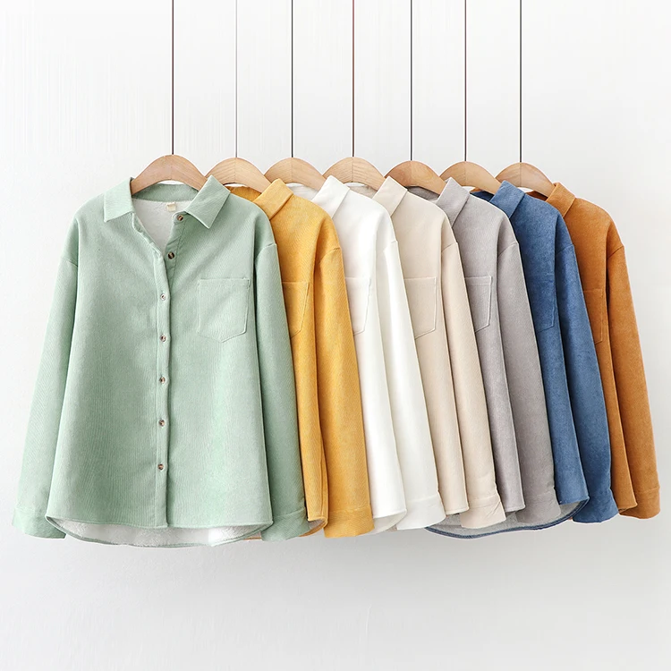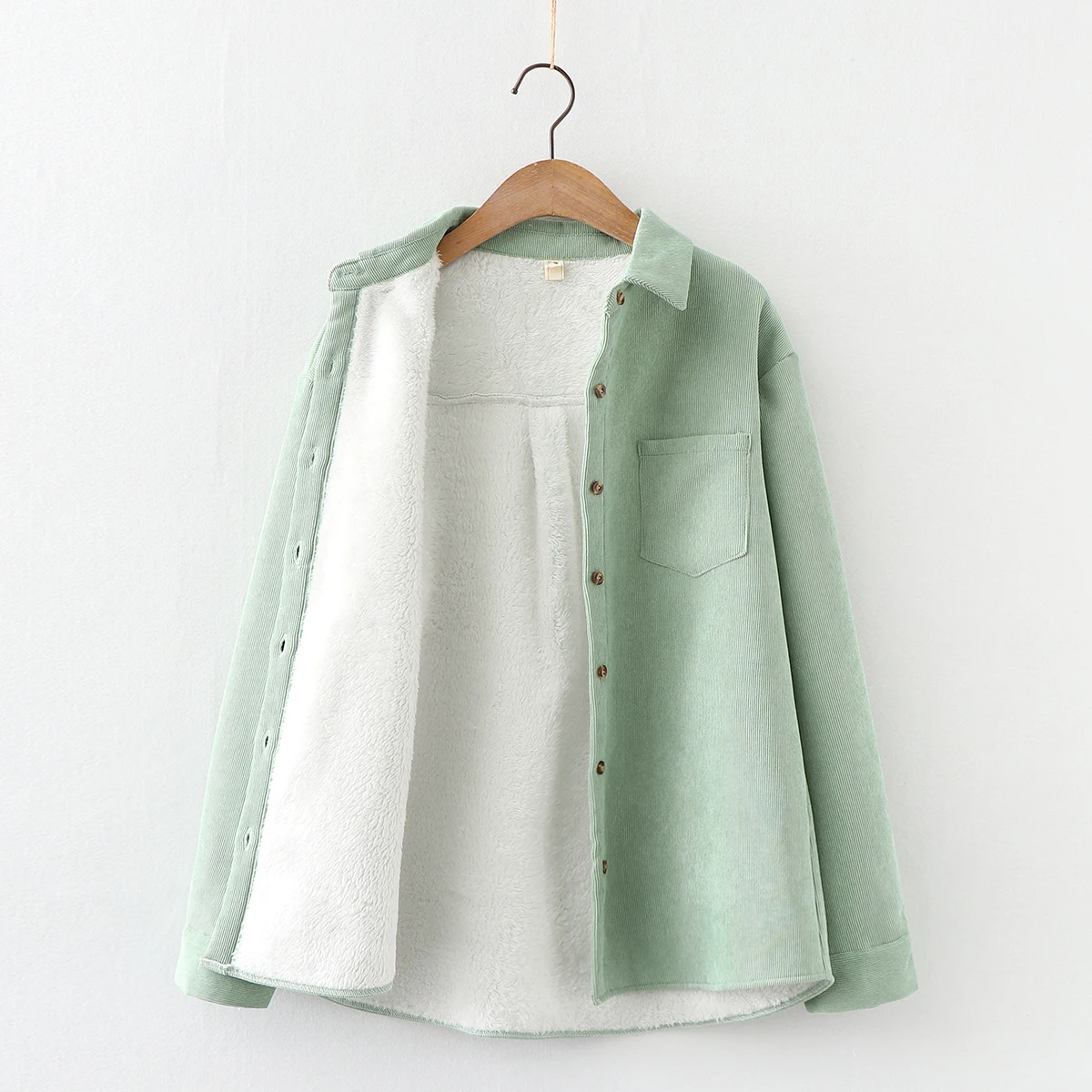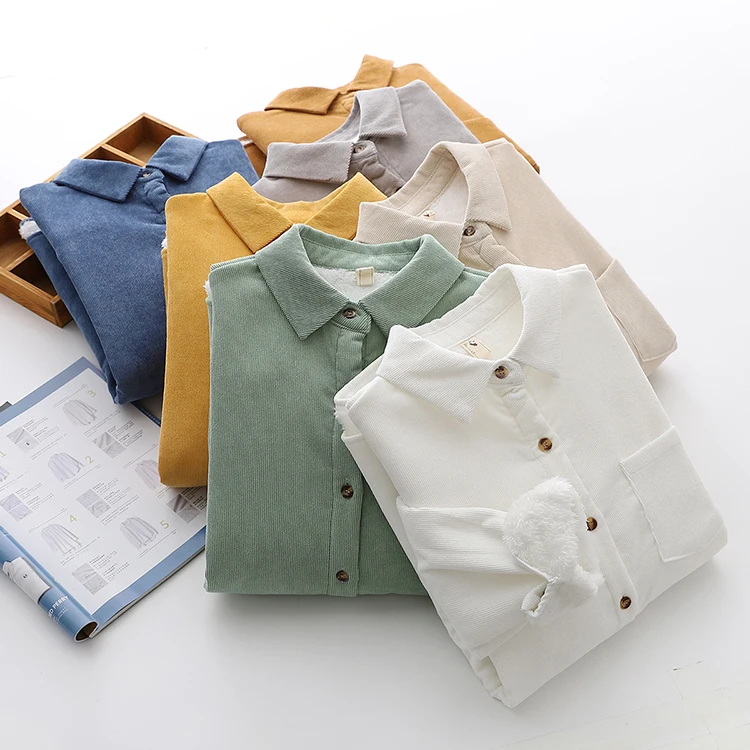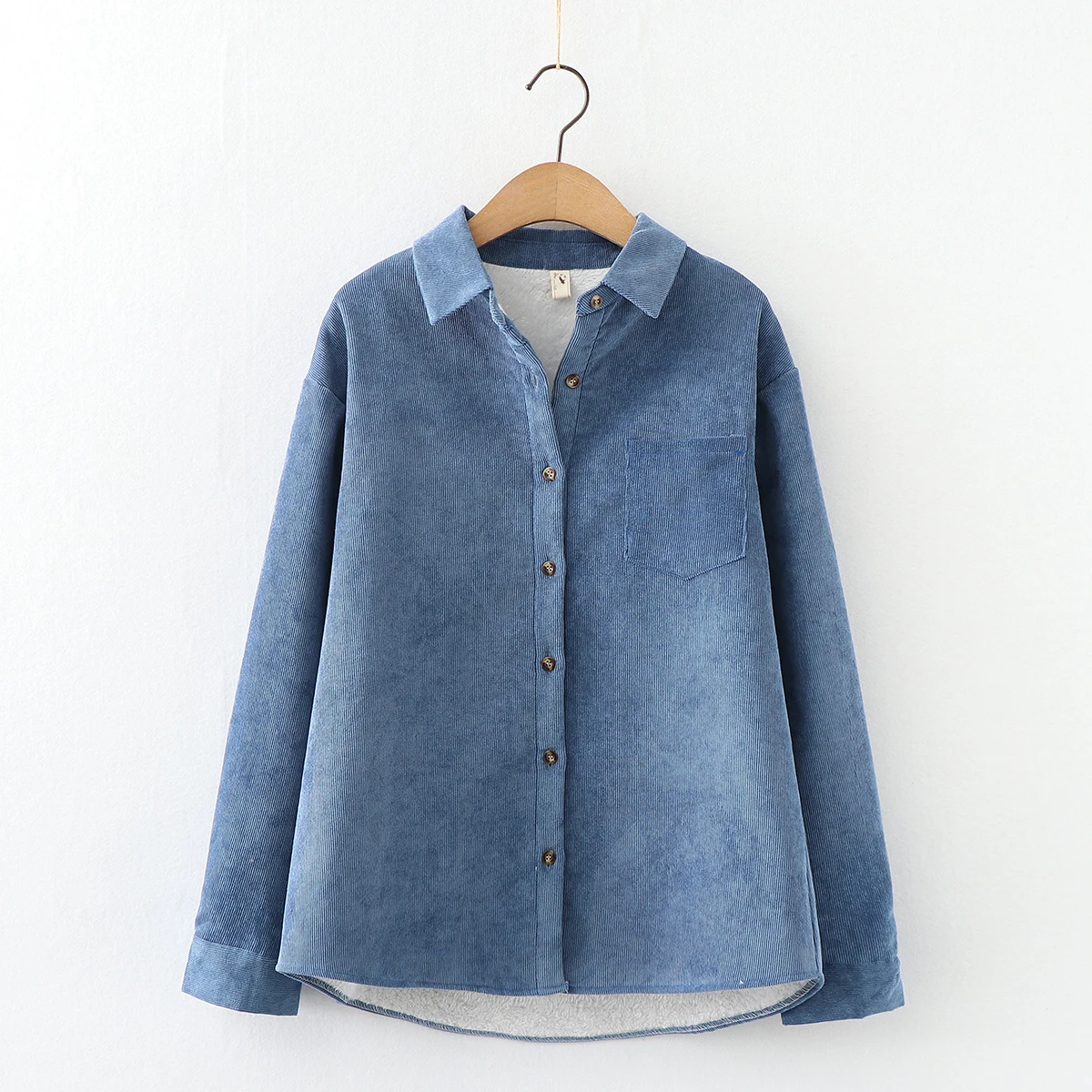 Женская Вельветовая рубашка, теплая, повседневная, плотная, в стиле колледжа, зима 2021