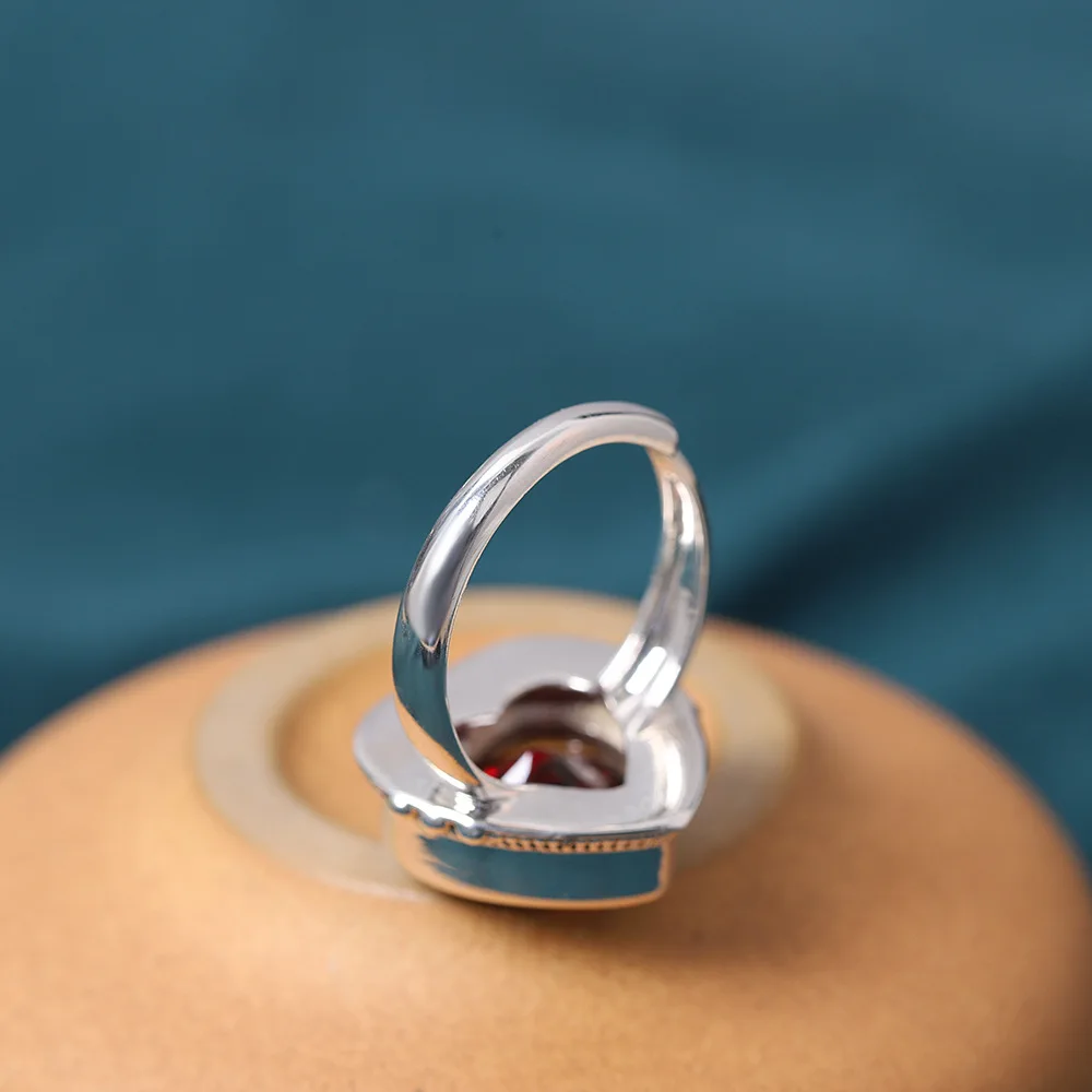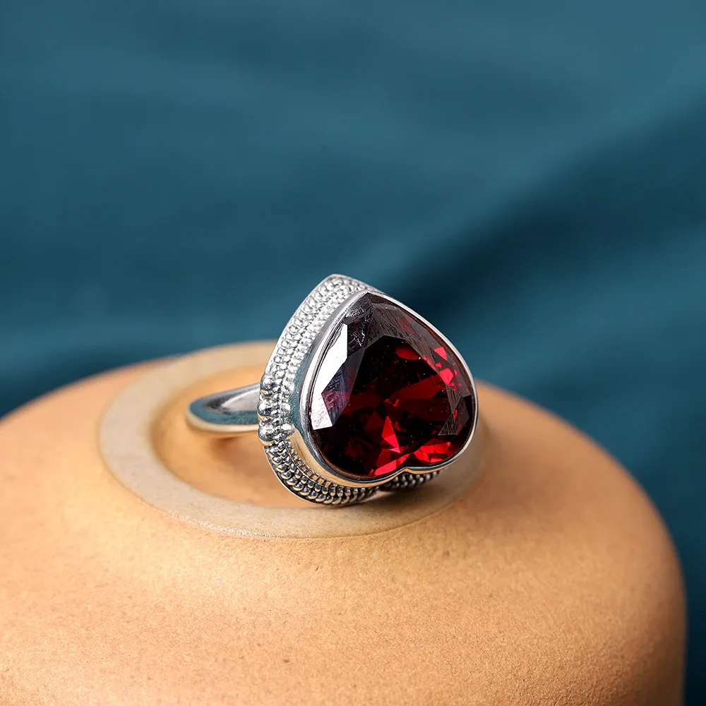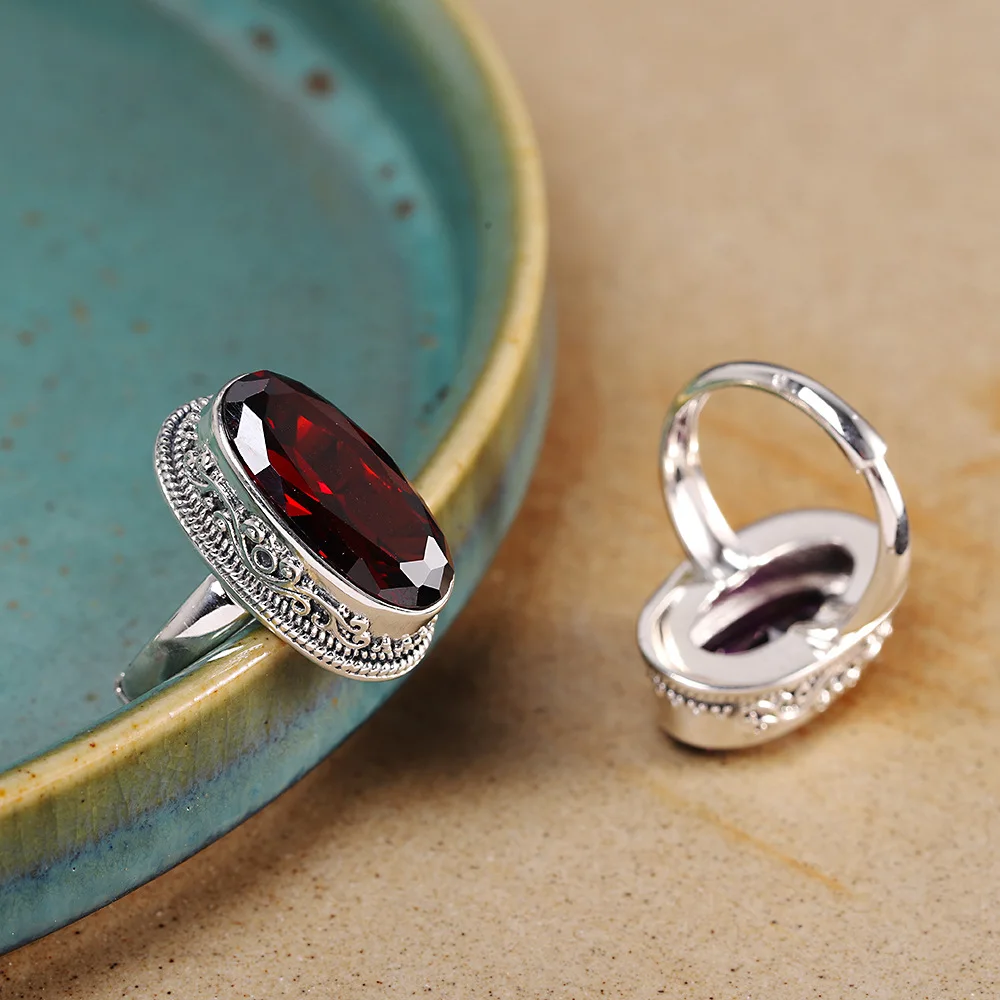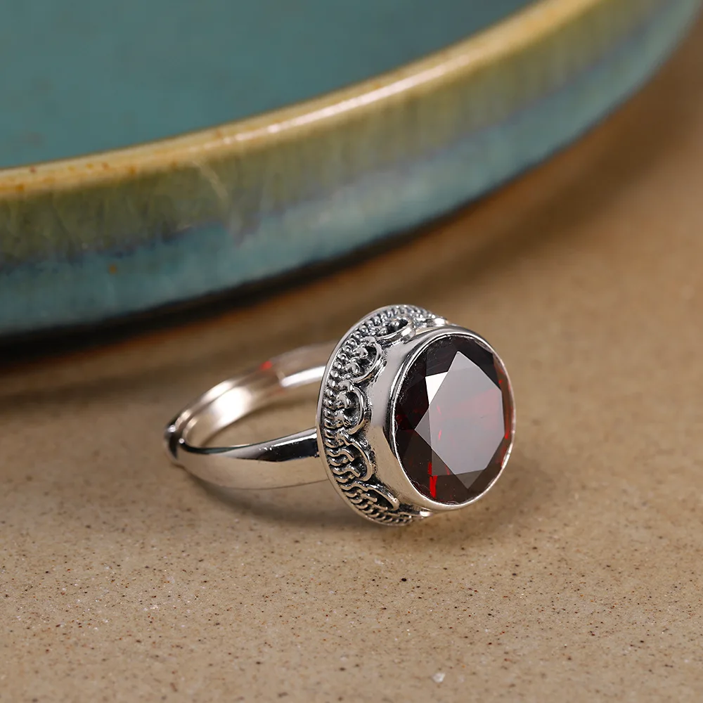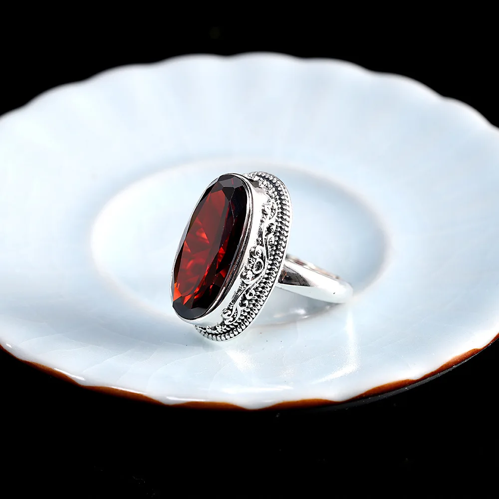 Кольцо женское из серебра 925 пробы, ручной работы, с гранатом