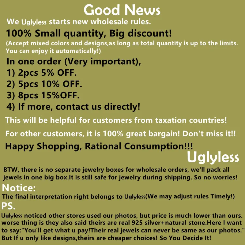 Uglyless 2 размера, кольца для влюбленных из настоящего серебра 999...