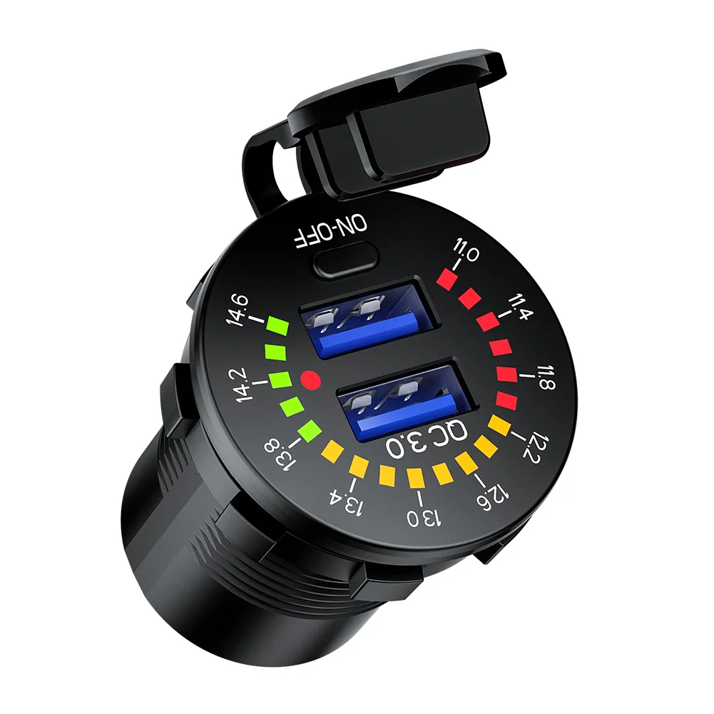 Автомобильное зарядное устройство QC3.0 со светодиодной подсветкой в прикуриватель, вольтметр, водонепроницаемый, двойной разъем USB 12-24 В, 2 порта, переключатель включениявыключения