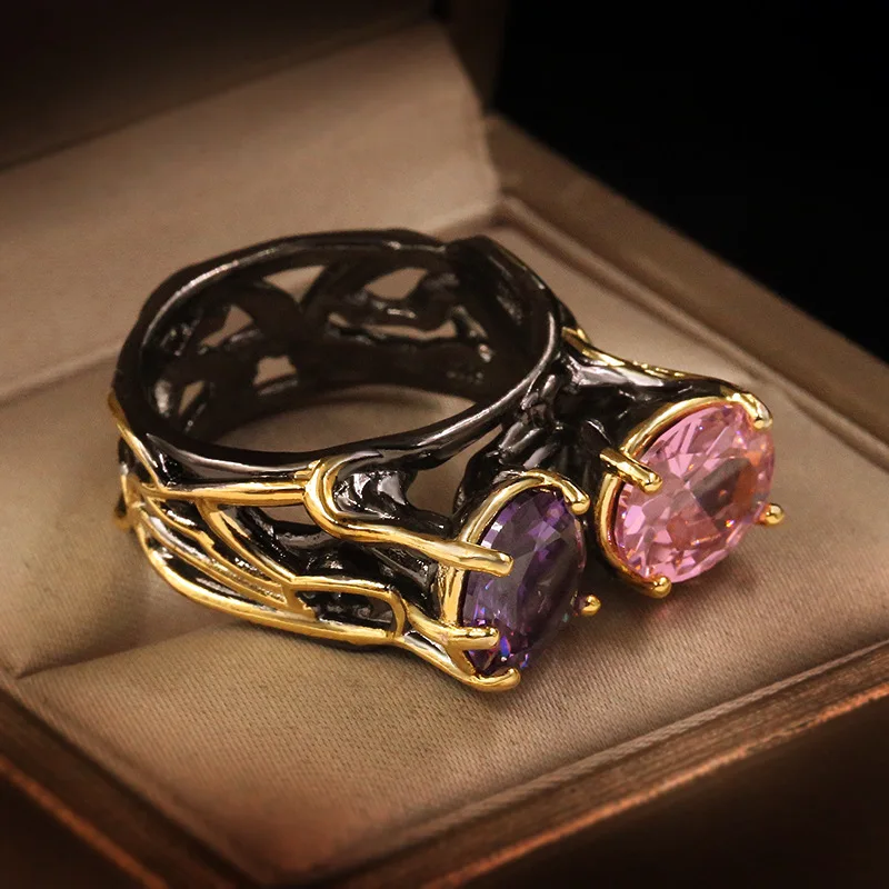Женское роскошное двухцветное обручальное кольцо из черного золота с цирконием большое круглое обручальное кольцо итальянская бижутерия Женская бижутерия