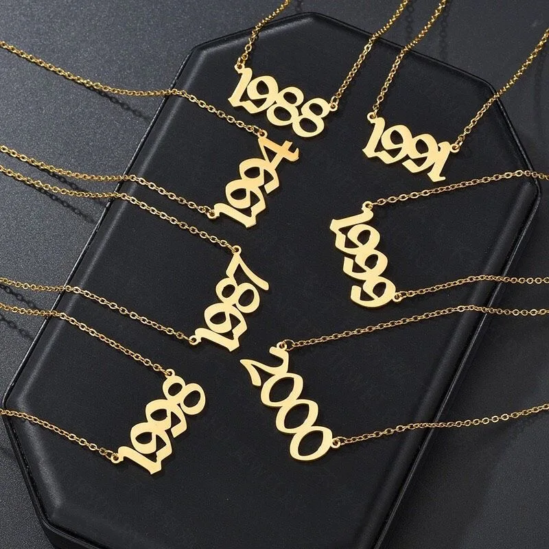 Персонализированные именные ожерелья, индивидуальная именная табличка ожерелье, год ожерелье, Старый английский стиль Имя Ювелирные изделия personalized.1980-2020