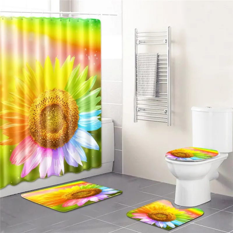 Элегантная занавеска для душа с цветочным принтом, набор водонепроницаемых мягких ковриков для ванны, аксессуары для ванной, домашний декор