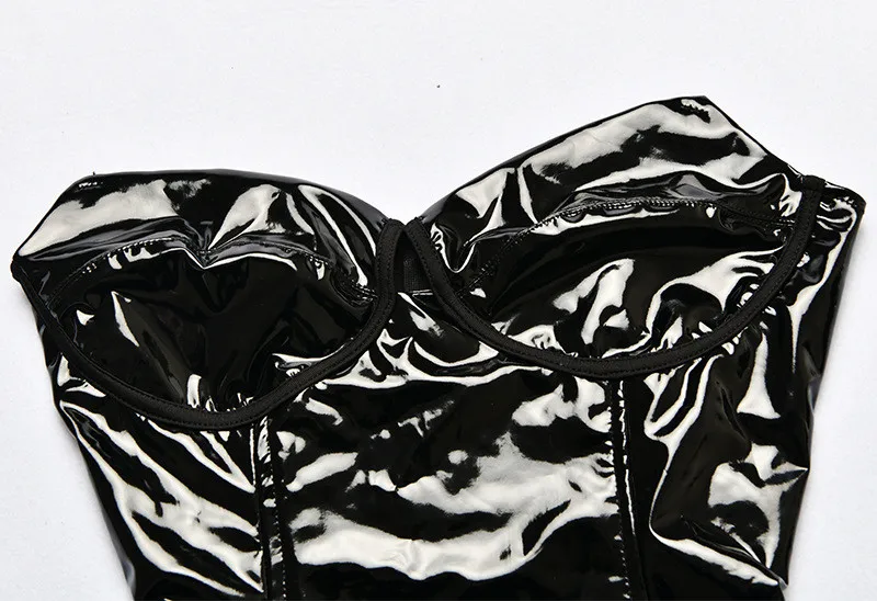 Женское сексуальное боди из искусственной кожи без бретелек с глубоким v-образным вырезом без рукавов, женские Стрейчевые боди, топы, облегающие боди, клубная одежда