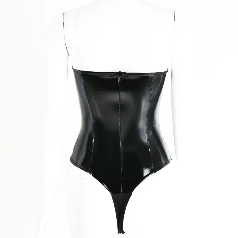 Летнее Сексуальное Женское боди из ПВХ кожи и латекса, эластичное г...