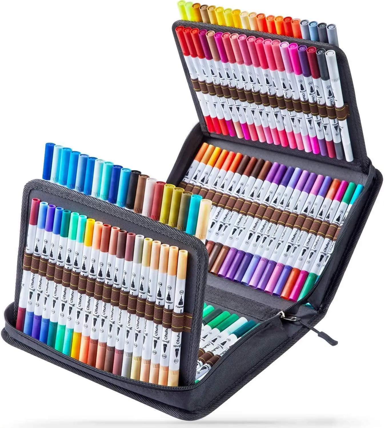 Маркеры с двойным наконечником, ручки для рисования, акварельные ма...