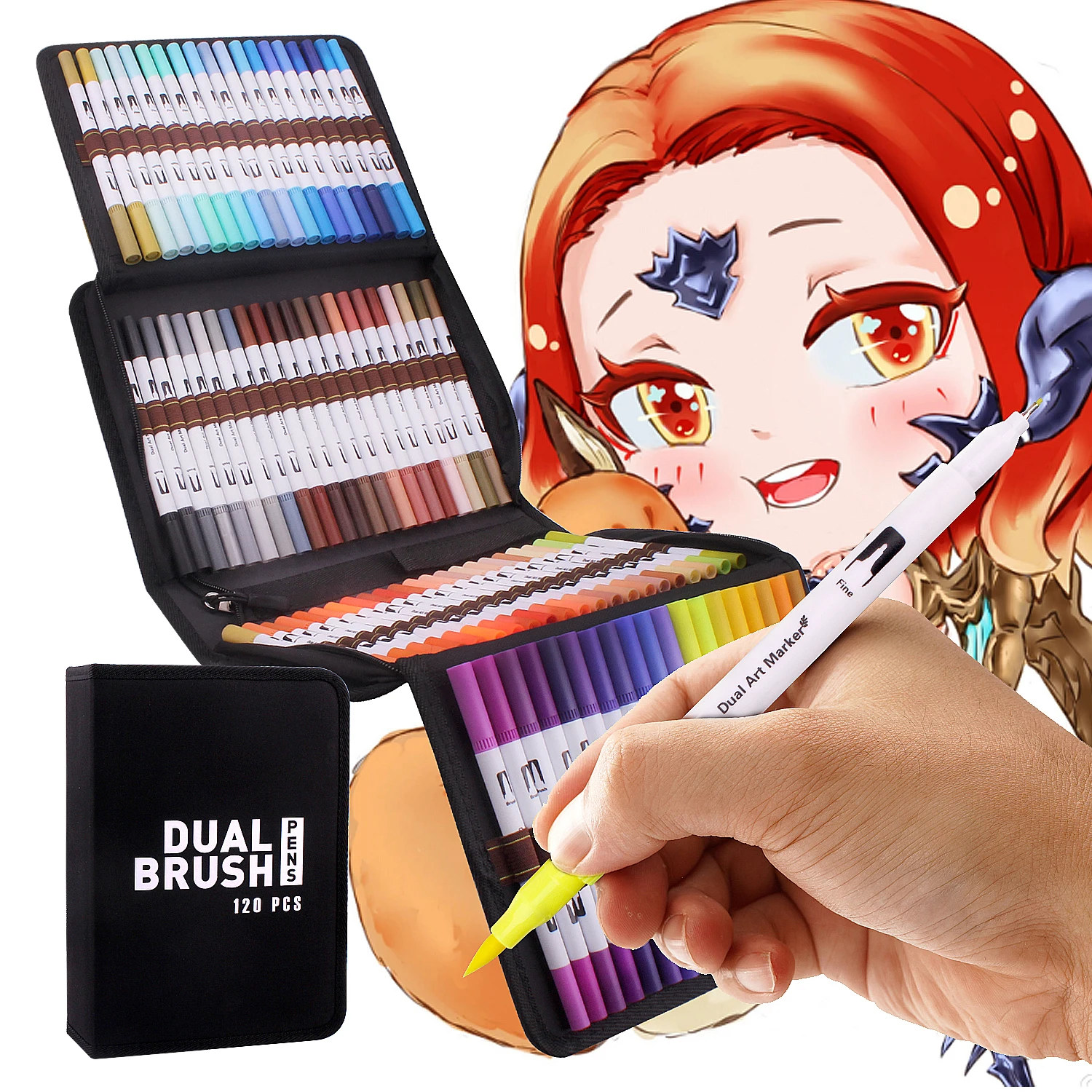 12-120 маркеров, двойной наконечник, кисть, ручки, фломастеры, аква...