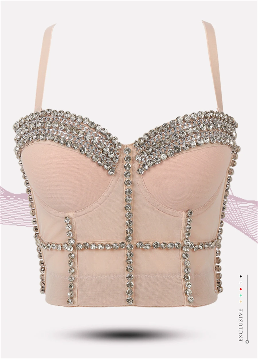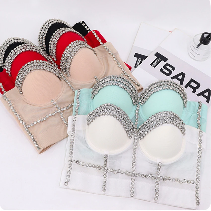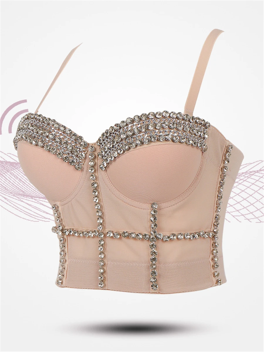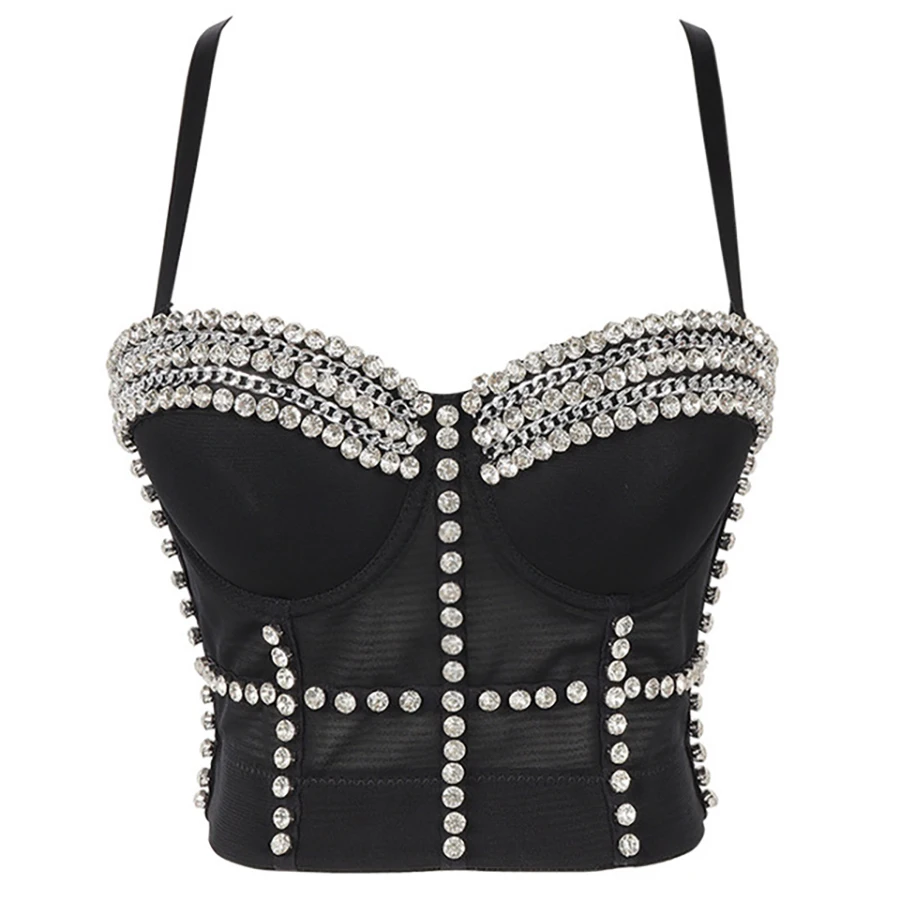 Женский корсет с открытыми плечами Стразы топ с яркими бусинами укороченный топ на бретельках с чашками сексуальный топ для ночного клуба бюстье