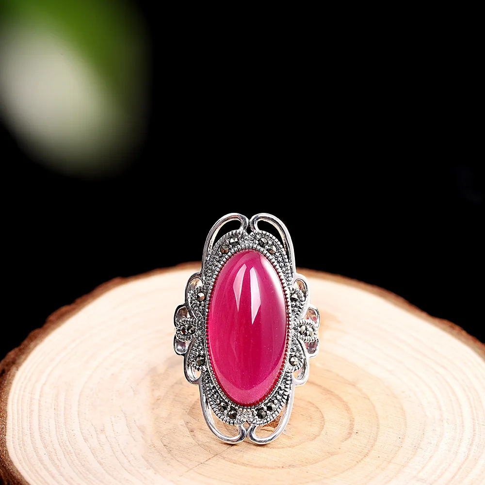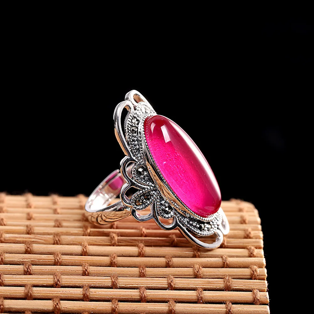 Uglyless большой Размеры драгоценные камни широкий преувеличенный кольца для Для женщин Прохладный черным агатом кольца корунда ярко-розовый экзотическая Бижутерия 925 серебро