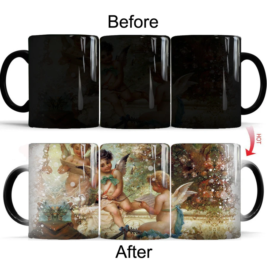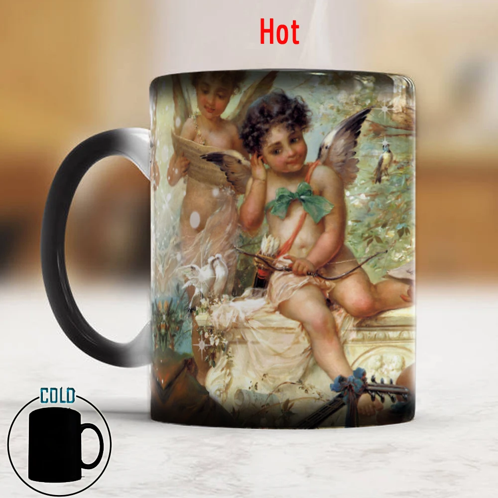 Винтажный Европейский классический ангел, Волшебная креативная меняющая цвет керамическая чайная кофейная кружка 11 унций