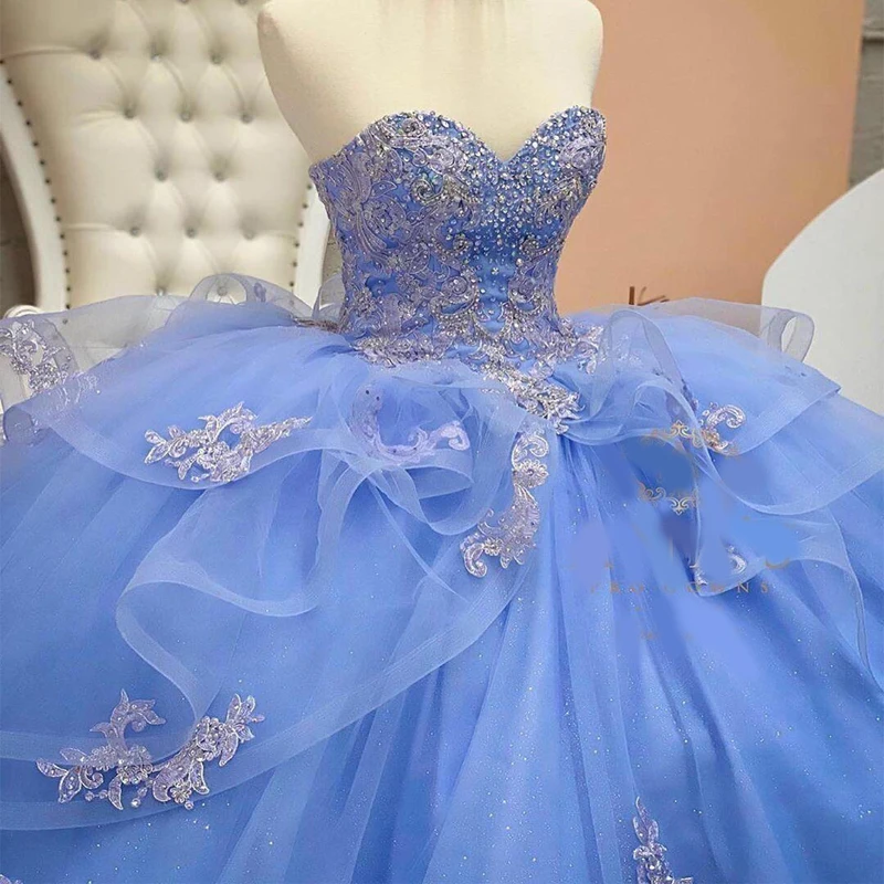 Светильник небесно-Голубое Бальное Платье с бусинами пышные платья милое платье для выпускного вечера с блестками аппликация с коротким Шлейфом Тюль сладкий 15 Dre