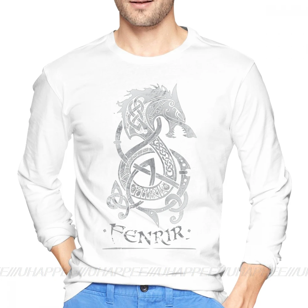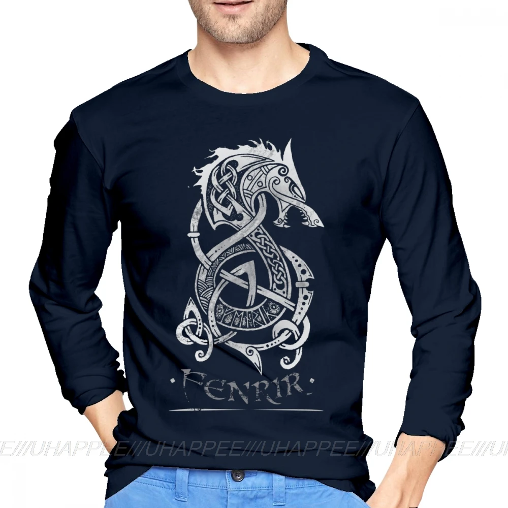 Прохладный Викинги волк скандинавской мифологии футболки для мужчин с круглым вырезом хлопковые футболки с длинными рукавами и принтом больших Размеры Базовая футболка