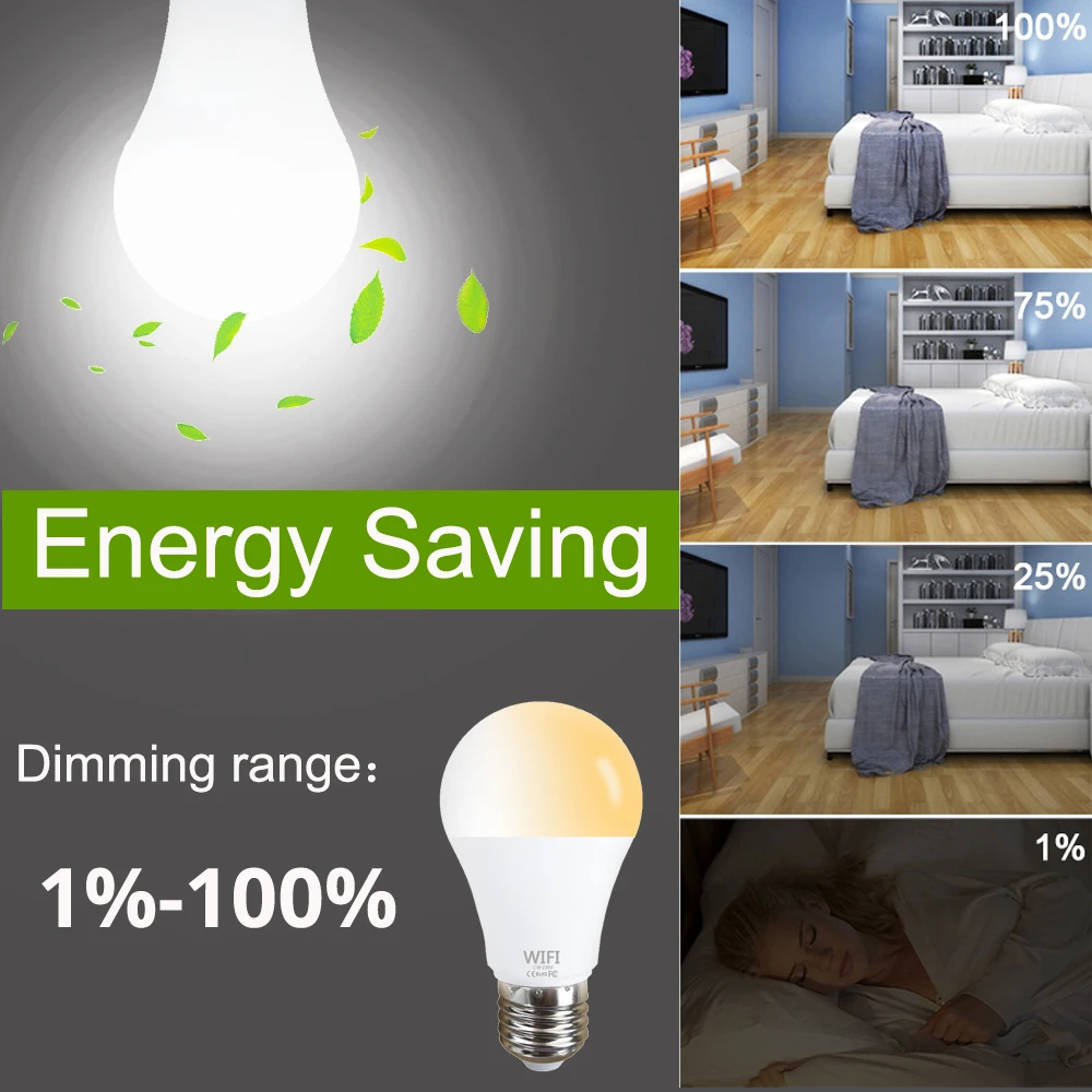 Лампочка E27 B22 для умного дома с Wi-Fi и регулировкой яркости, 9 ...