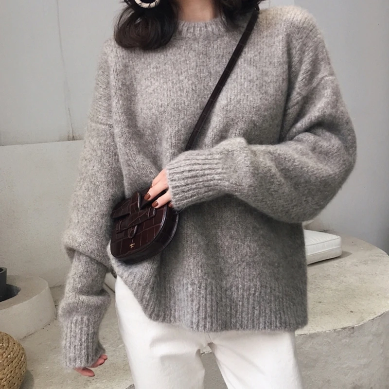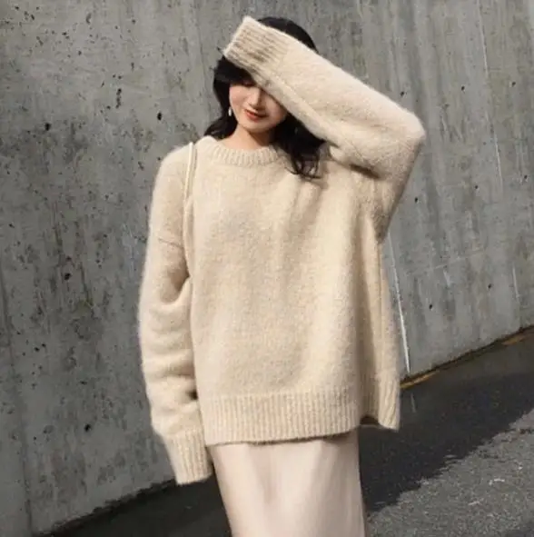 Плотный свитер оверсайз, женский джемпер, сезон осень-зима 2022, шерстяной кашемировый теплый свитер, Женский Зимний вязаный пуловер