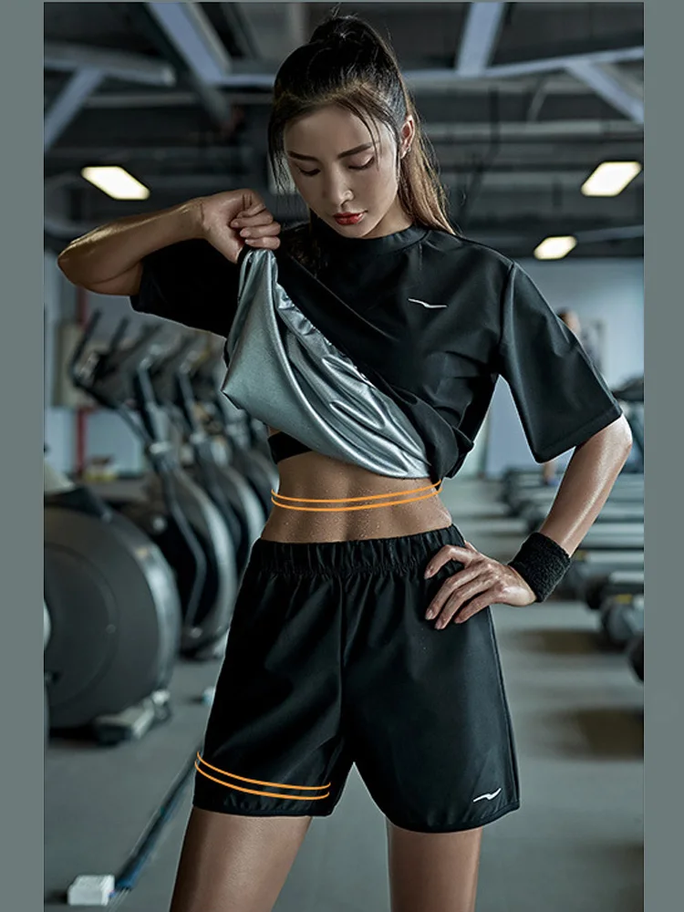 Костюм для сауны женский для похудения тренажерного зала фитнеса свитшот для тренировки тренировок горячего сжигания жира рубашка с коротким рукавом шорты свободный крой