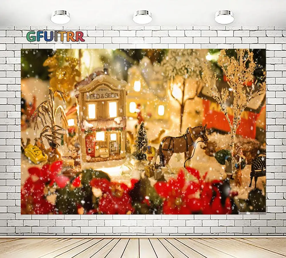 Виниловый фон GFUITRR с изображением рождественской деревни, праздничный декор, белый снег, игрушечная лошадь, реквизит для студийной фотосъемки