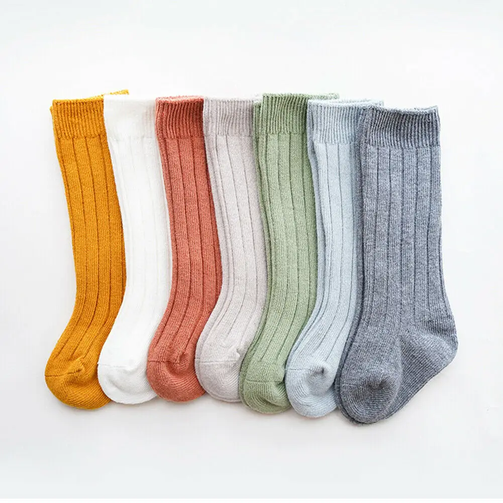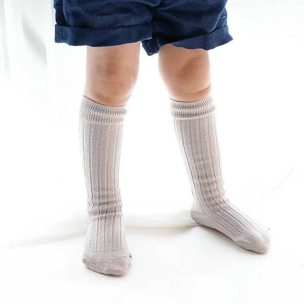 Однотонные Нескользящие чулки для маленьких девочек, Хлопковые гольфы для младенцев, детские вязаные длинные носки для малышей