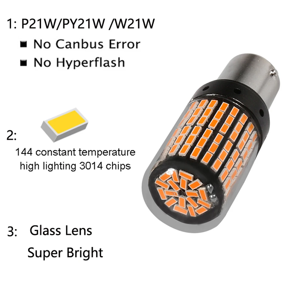 Светодиодные лампы CanBus S25 3014 BA15S P21W 1156 144smd BAY15D BAU15S PY21W T20 LED 7440 W21W W215W для сигнала поворота, 20 шт.