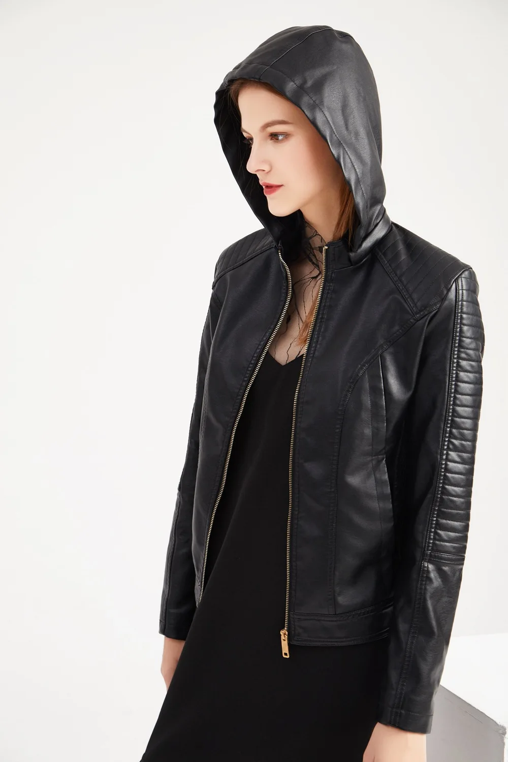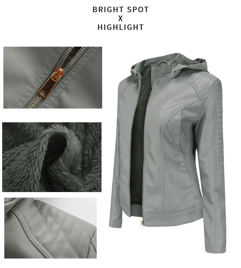 Женская байкерская куртка из искусственной кожи со съемной шляпой на осень и весну