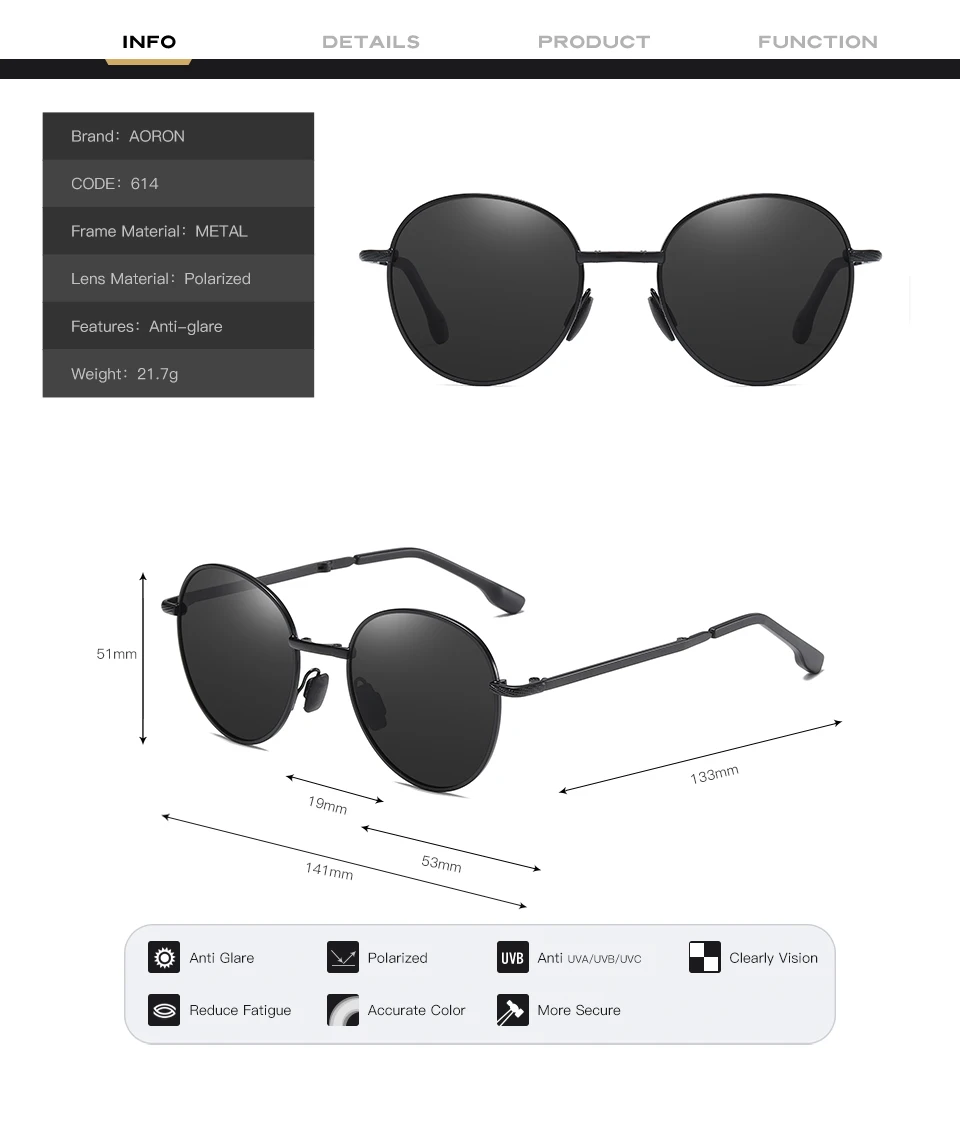 Солнцезащитные очки AORON мужскиеженские складные, Классические Поляризационные солнечные аксессуары с круглыми линзами, в металлической оправе, UV400