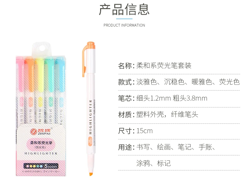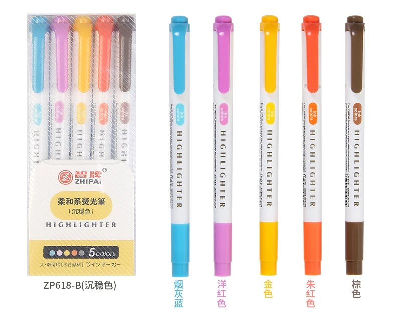 ZHIPAI двойной наконечник высокий светильник er ручка светильник Цвет серии 25 Цвет маркер свежий мягкие рубашки для мальчиков студент Звезда маркер-5 шт.