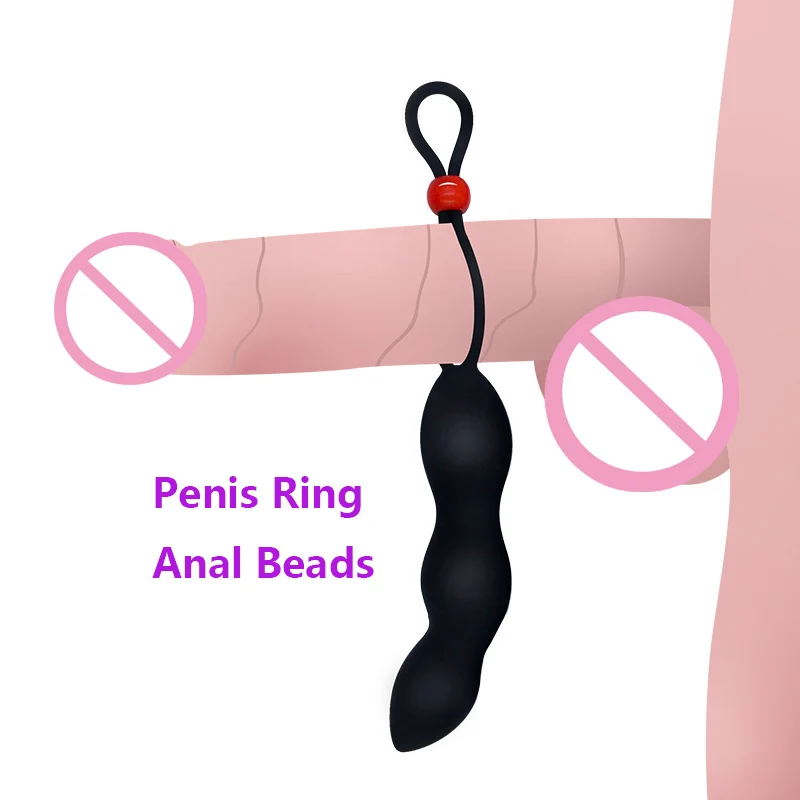 2 в 1 силиконовая анальная пробка анальные шарики для массажа простаты член кольцо для полового члена секс-игрушка для взрослых мужчин женщин для ануса, анальная пробка Анальная пробка