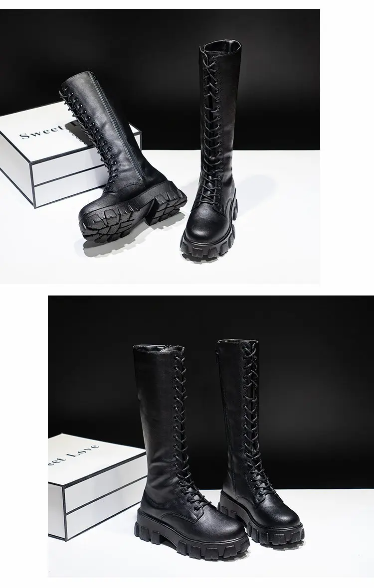 Женские высокие сапоги LazySeal, из искусственной кожи, белые, на шнуровке, на молнии, увеличивающие рост, с плюшевой подкладкой, большие размеры 43, для зимы