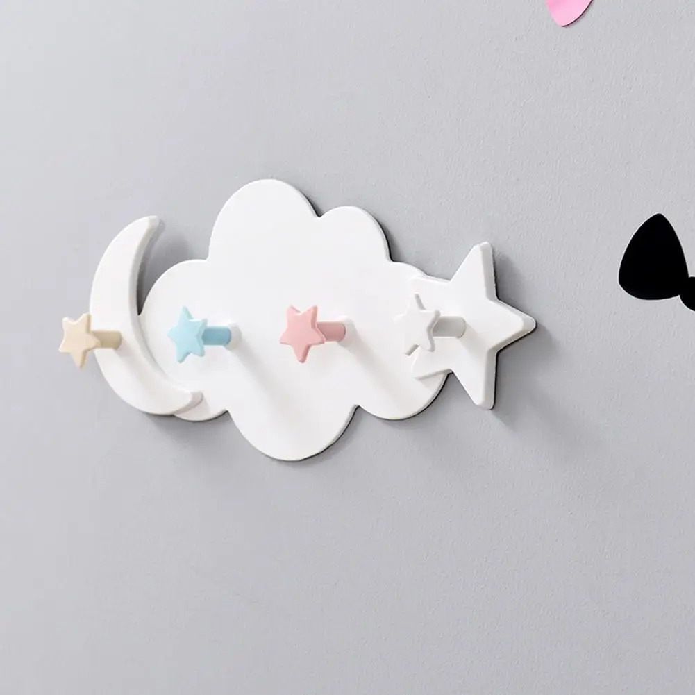 Самоклеющиеся пластиковые крючки для хранения одежды со звездами и облаками, настенная вешалка для детской одежды, Настенный декор для спальни