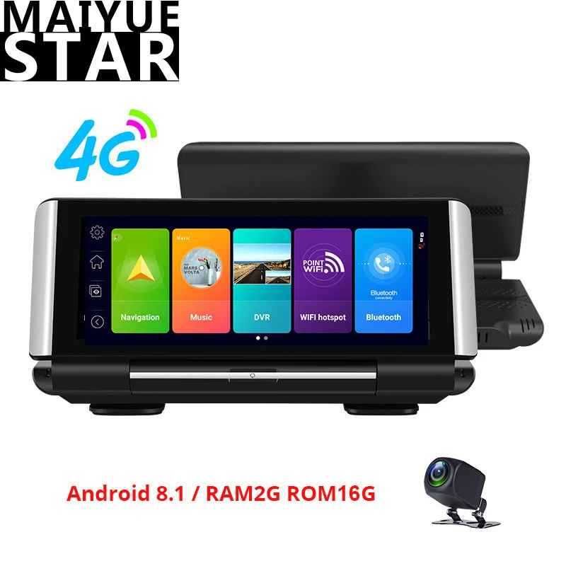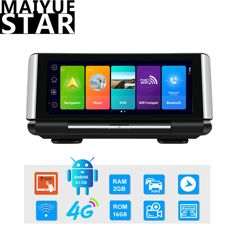 Автомобильный видеорегистратор, 7-дюймовый, 4G, Android 8.1, центральная консоль, ОЗУ 2 ГБ + 16 ГБ, видеорегистратор 1080P, двойной объектив, GPS-навигация, WIFI, ADAS, видеорегистратор