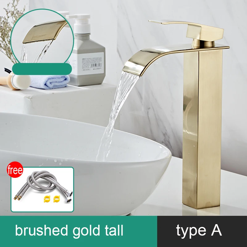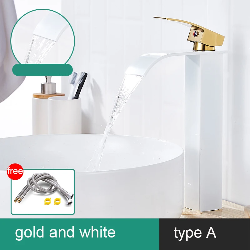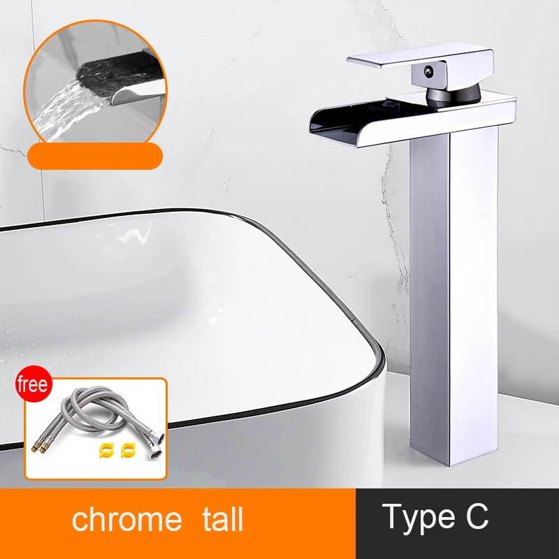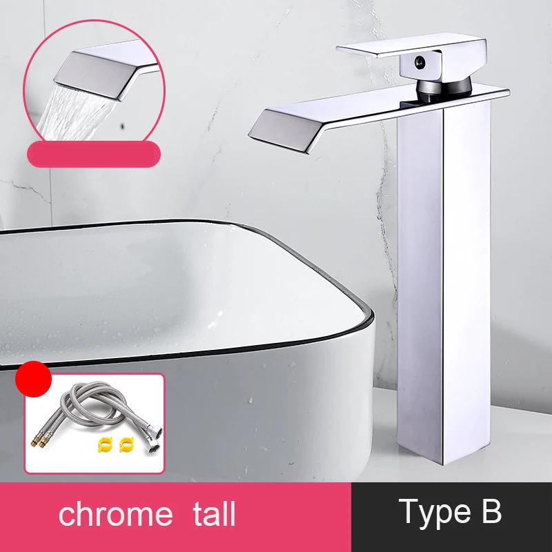 Смеситель для раковины, кран для холодной и горячей воды, с одной ручкой, водопад, аксессуары для ванной комнаты, с бесплатным шлангом