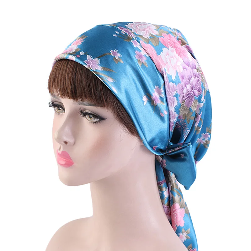 Новинка, Женская шелковистая атласная Регулируемая головная повязка, чалма с бантом, завязывающаяся бандана, кепка для пациентов с выпадением волос