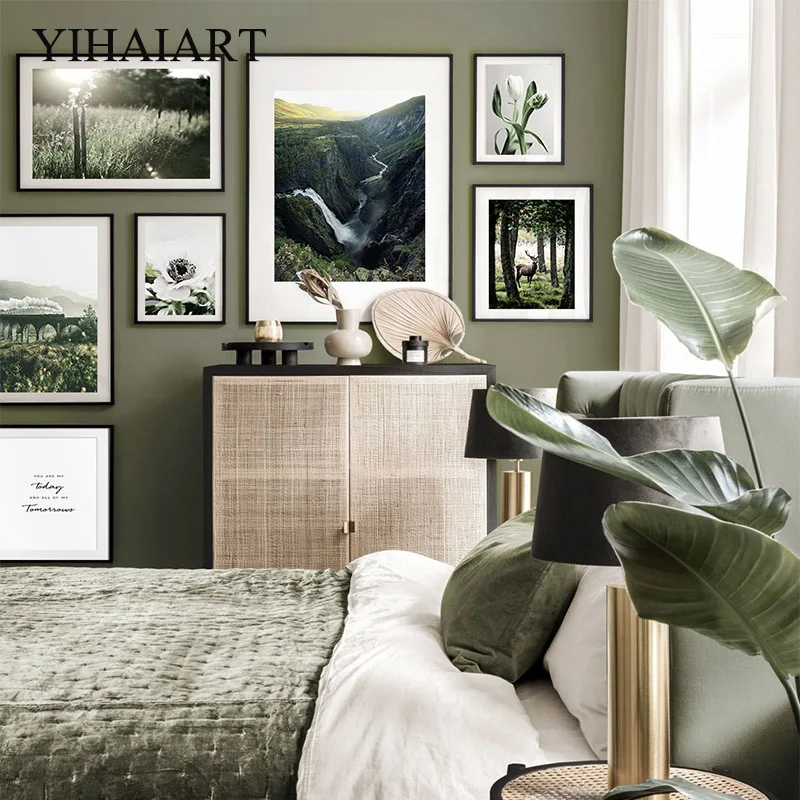 Природа горы восход пейзаж плакат лес олень животное стены искусства печать картина Северный цветок картина Современное украшение дома