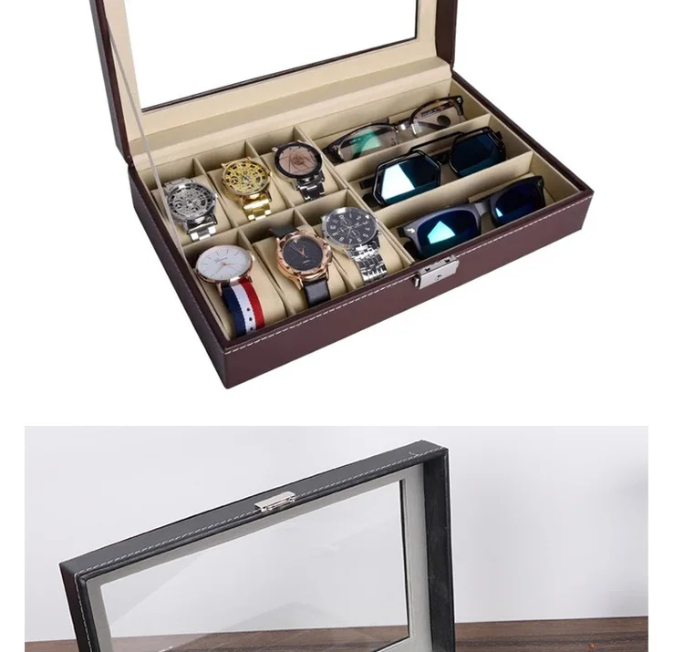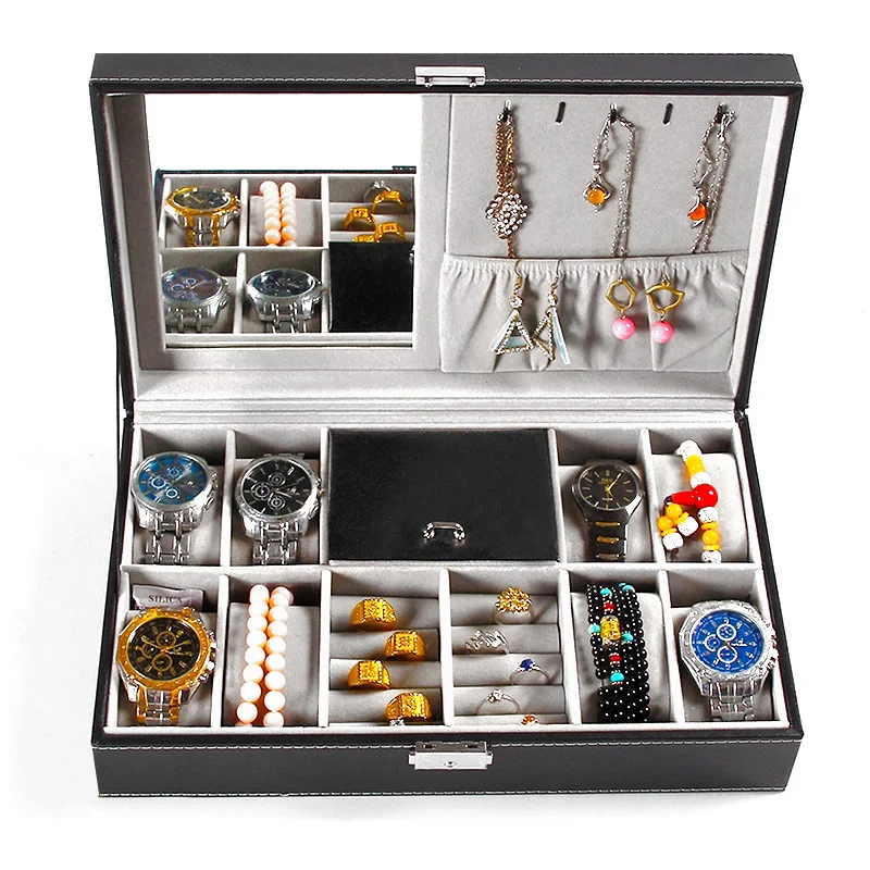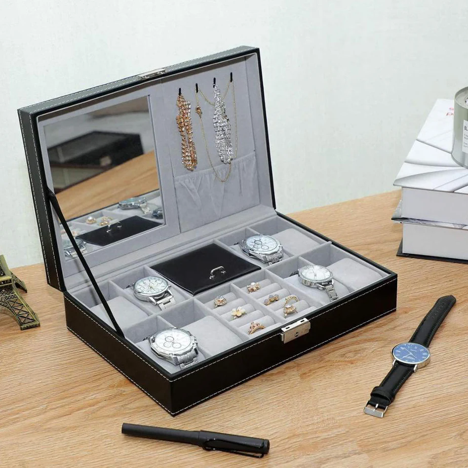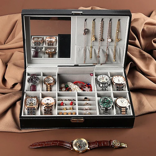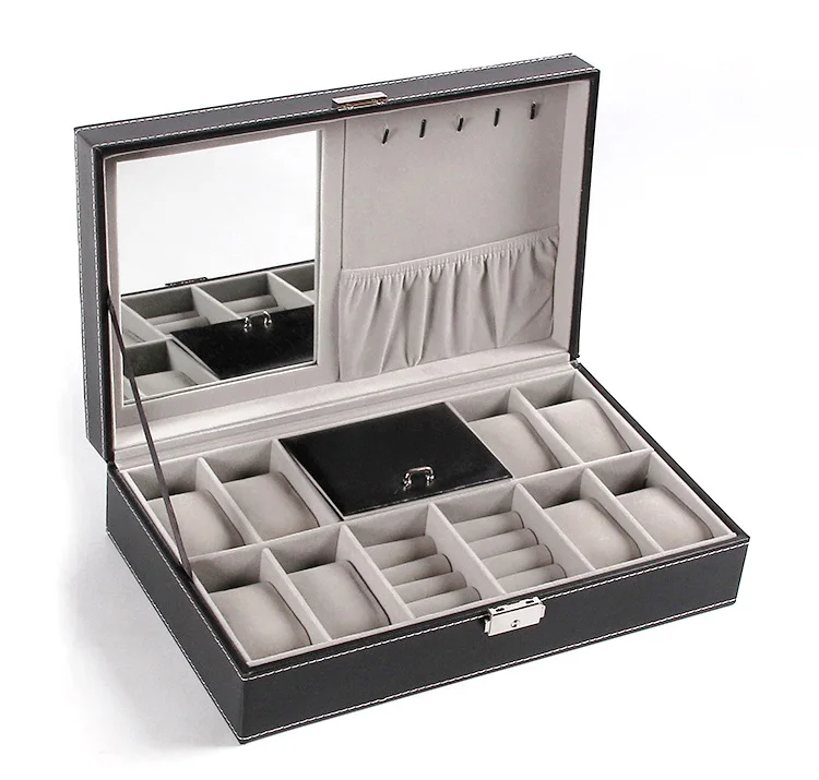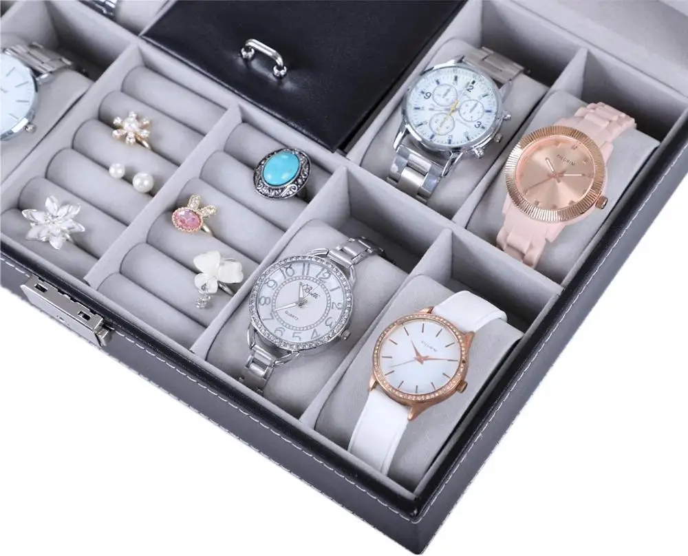 Кожаная Коробка для часов, Черная Мужская коробка для хранения часов, чехол с зеркальным замком, женский подарок, органайзер, демонстрация колец, шкатулка для ювелирных изделий, держатель
