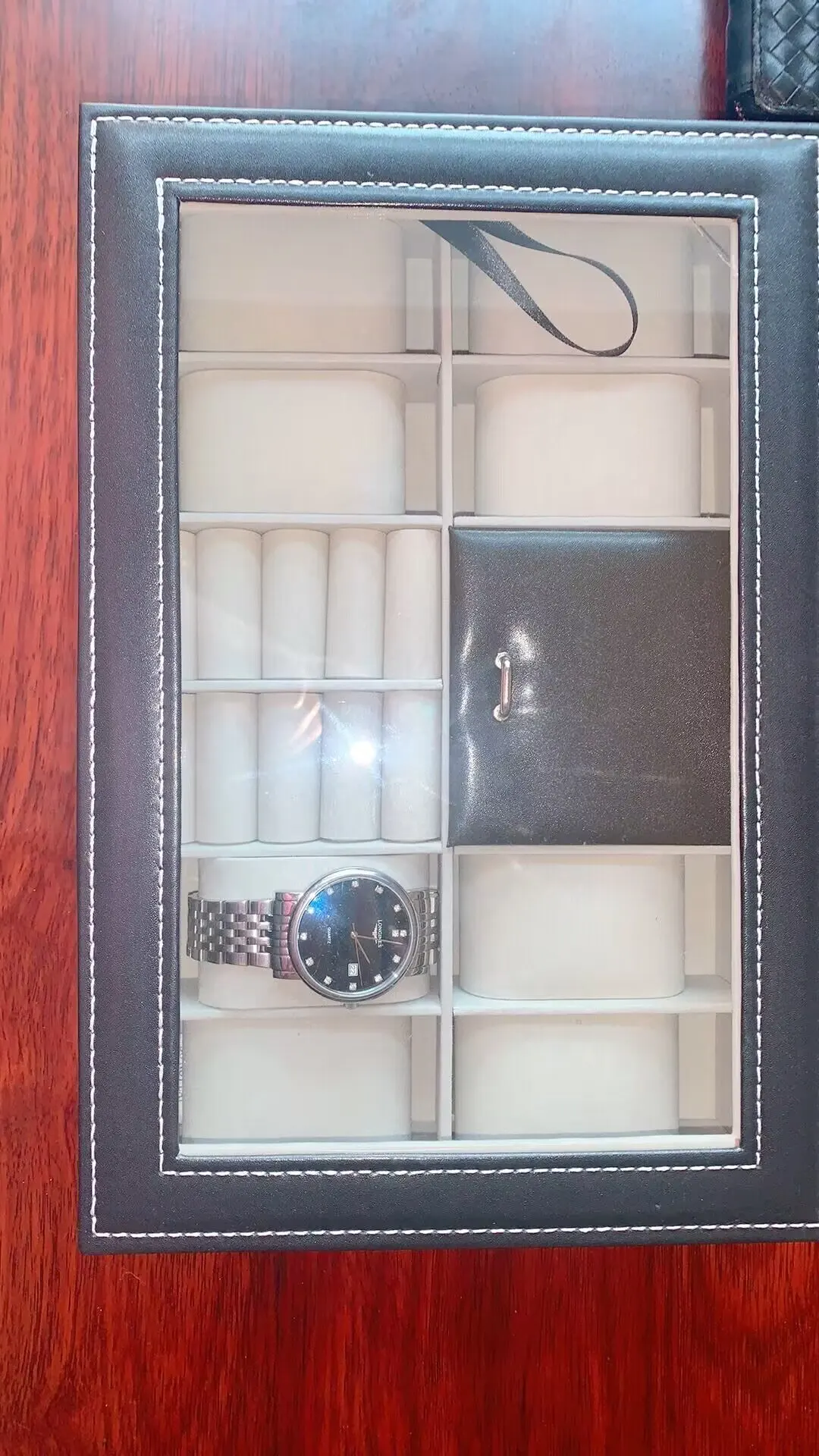 Особенности: Изготовлен из высококачественной синтетической кожи, износостойкий и прочный. Лучше всего для отображения ваших часов в магазине или на вашем туалетном столике. Съемные подкладки внутри для хранения часов, идеально подходят для ваших потребностей. С большим зеркалом в крышке для удобного макияжа и одевания. Идеально подходит для личного или делового использования. Описание: Мягкая внутренняя подкладка защищает ваши любимые ювелирные изделия от царапин и повреждений. Достаточно большой размер для ваших ожерелий, браслетов, часов, сережек, ушей и других косметических средств. С металлическим замком для обеспечения безопасности всех ваших ювелирных изделий. Это хорошо подходит для украшения дома. Посылка включает в себя: 1 x коробка для часов Примечания: 1. Из-за разницы между различными мониторами изображение может не отражать фактический цвет изделия. Мы гарантируем, что модель реального изделия не отличается от представленной на фото. 2. Из-за ручного измерения и различных методов измерения, пожалуйста, допускайте отклонение на 1-3 см. Спасибо!