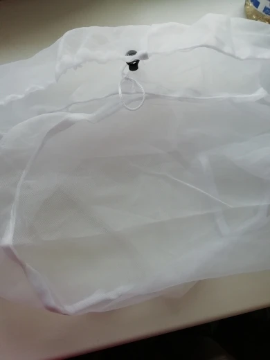 Все хорошо! Вмещает много одежды! Минус в том, что он раскрывается при стирке и одежда вываливается, приходится самой завязывать !!! Остальное всё хорошо, в эксплуатации две стирки, пока все цело. Очень быстрая доставка!