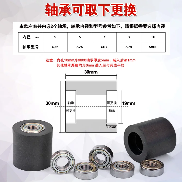 Ролик полиуретановый с двумя подшипниками, диаметр 30 мм, Длина 30 мм, отверстие 567 810 мм, 1 шт.