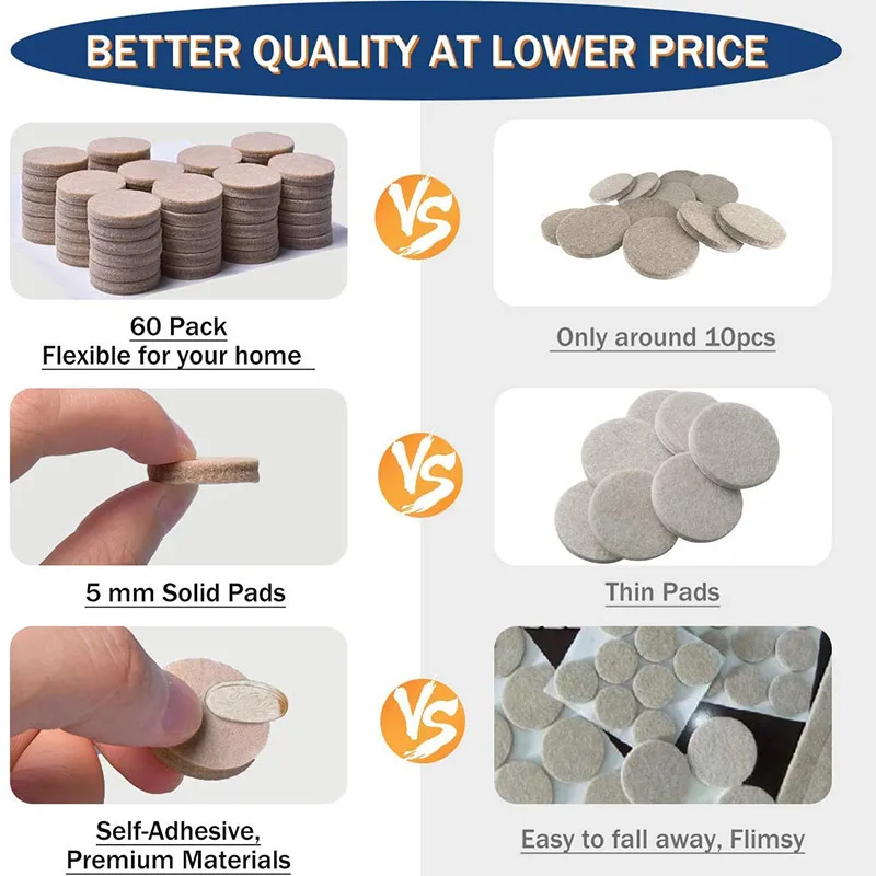 Описание:Защитите свои Полы-наши войлочные прокладки с защитой от царапин были искусно разработаны для защиты ваших деревянных и ламинатных полов и поверхностей. Войлок обеспечивает толстый барьер между вашей мебелью и полами, который тщательно защищает поверхность от царапин и потертостей.Высокое качество войлока: Наши мебельные колодки изготовлены из прочного экологически чистого материала с переработанными волокнами, они не будут окрашивать или портить ваши мебельные днаСамоклеящаяся: прочная клейкая подложка помогает надежно держать ее на месте на нижней части мебели.Идеально подходит для любых ножек стула и мебельных ножек: Вы также можете использовать их на деревянных или ламинатных полах. Просто снимите подкладку с защитного листа и нанесите ее на мебель, как наклейки для мебелиКруглые войлочные прокладки 32 шт.: высококачественные и долговечные защитные ножки стула диаметром 18 мм, подходят для большей части вашей домашней мебели, чтобы предотвратить появление царапин, и вам никогда не придется слышать этот раздражающий шум.Информация о продукте:Цвет: бежевый, коричневыйРазмер: 18 мм в диаметре, толщина 5 мм