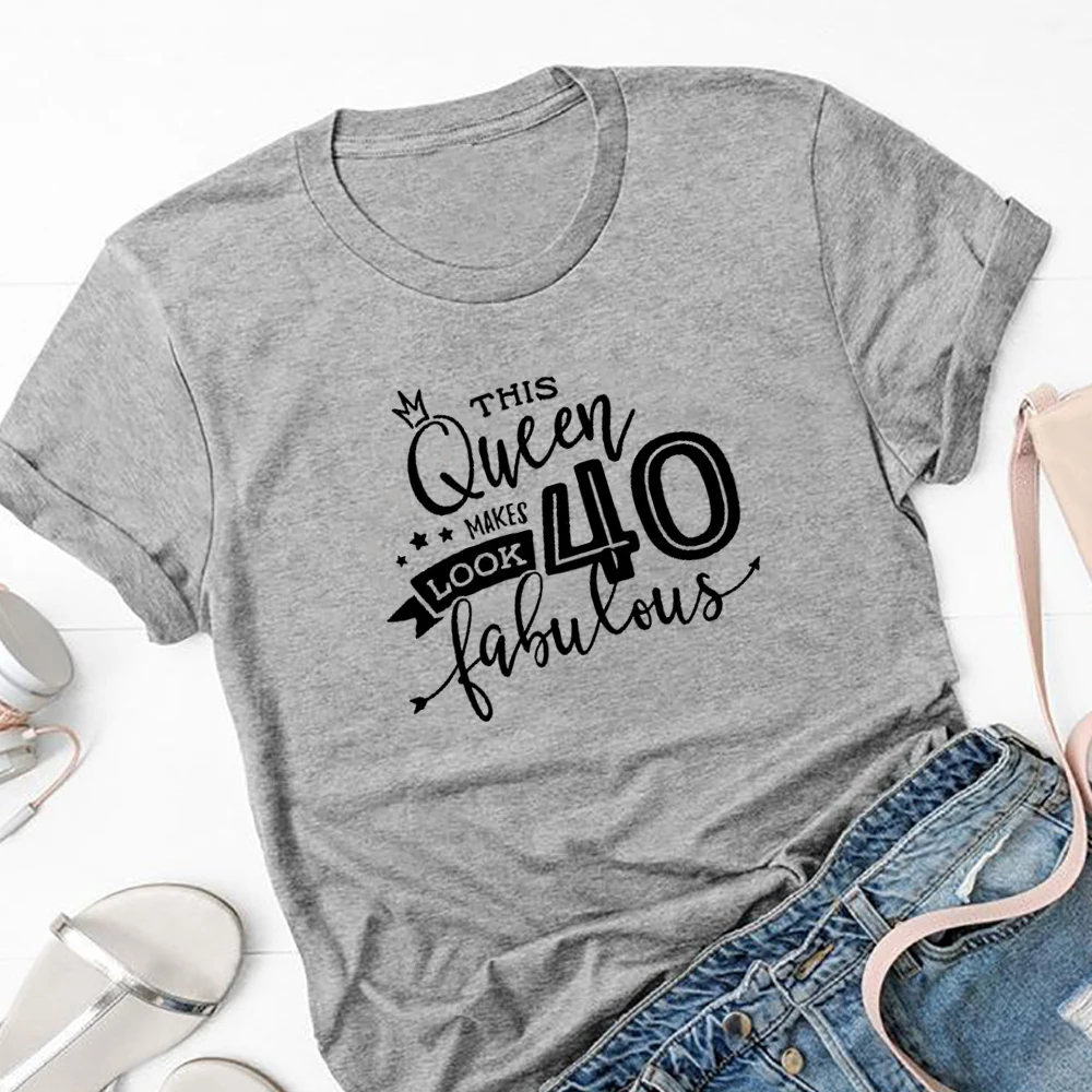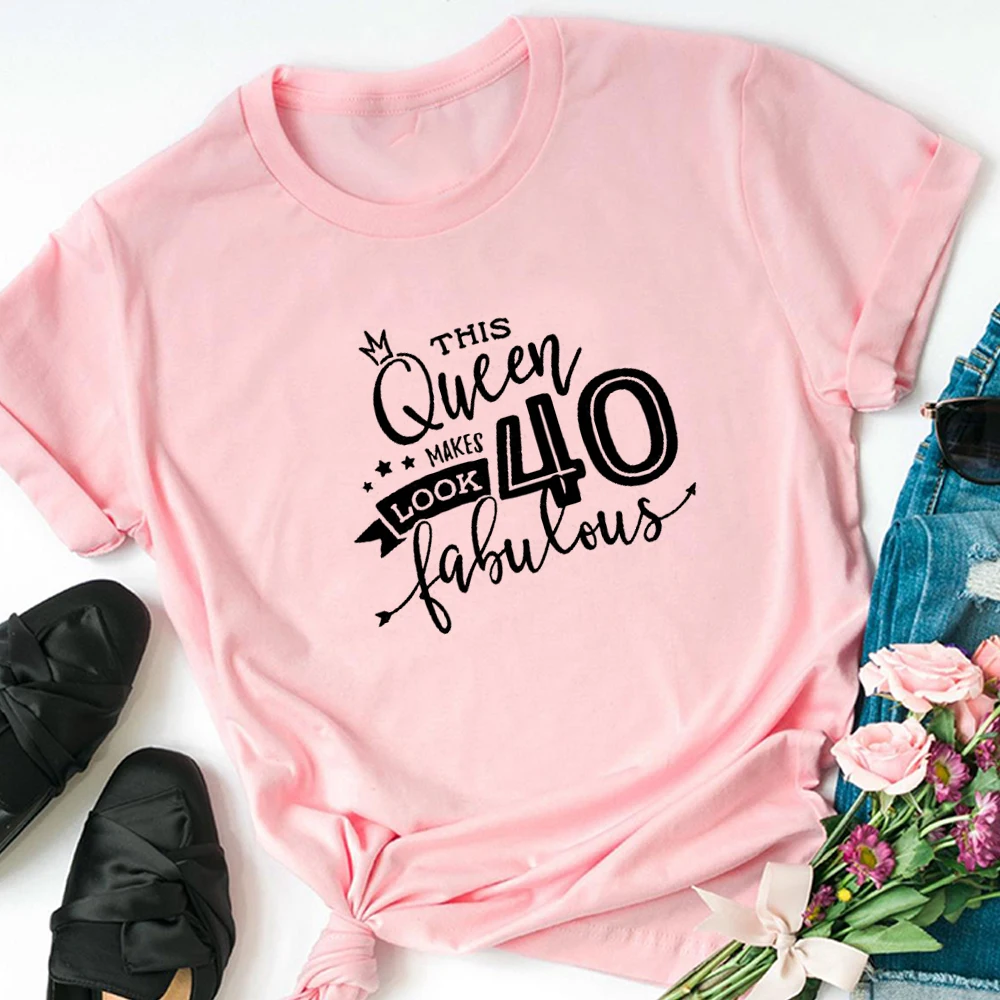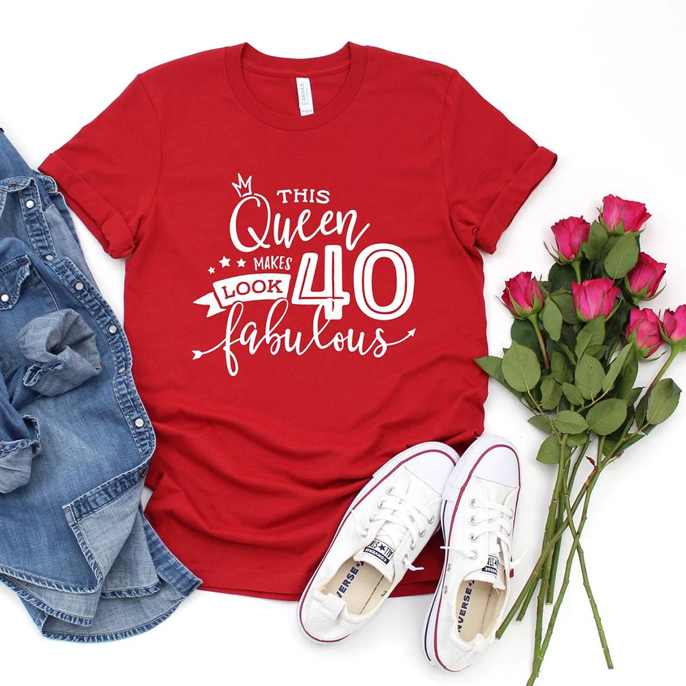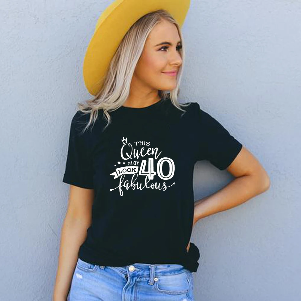 Эта королева выглядит 40 потрясающе 40 подарок на день рождения женские футболки летняя модная графическая футболка размера плюс топы для мамы