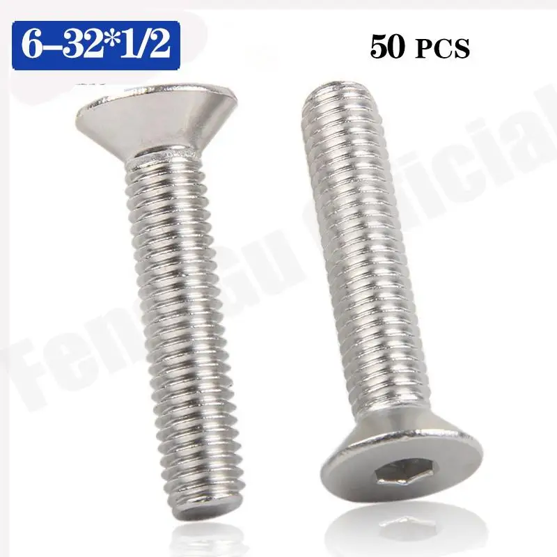Винты с потайной головкой и шестигранной головкой, 50 шт., 6-32*12 ANSIB18.3F 304, из нержавеющей стали HW126