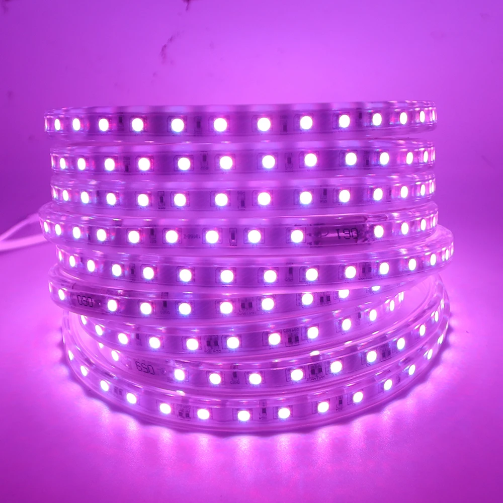 Светодиодная ленсветильник RGB 5050 220V 60 светодиодный sM наружная Водонепроницаемая светодиодная лента с пультом дистанционного управления гибкая светодиодная лента с вилкой европейского стандарта