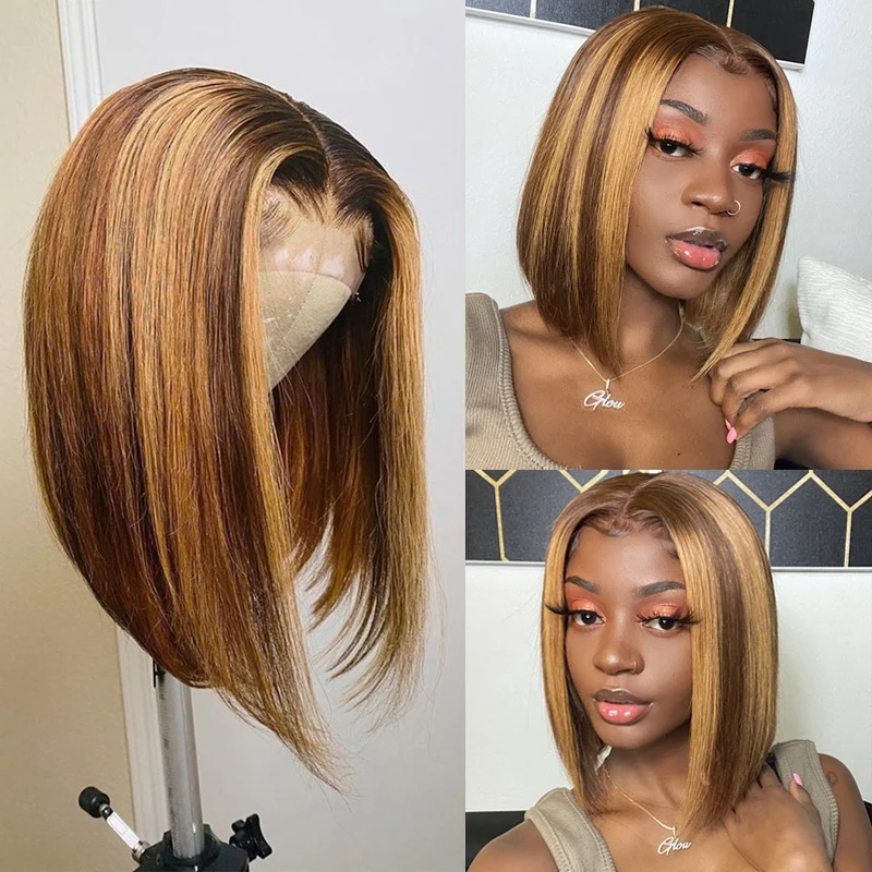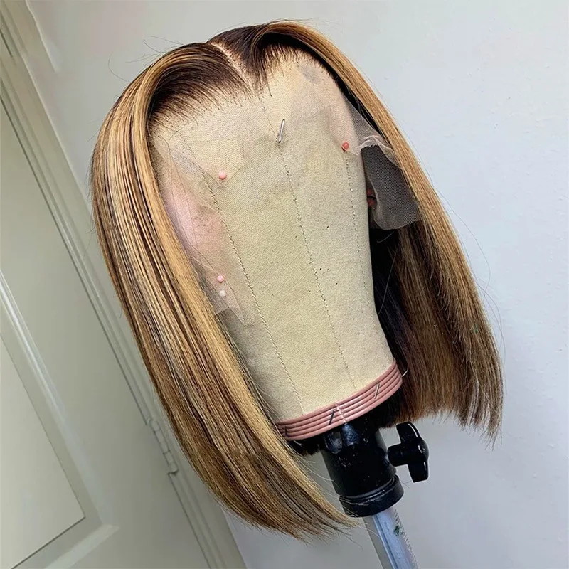 Парики на сетке 4x4, прямые короткие парики боб, медовая блондинка, подчеркивающие человеческие волосы, прямые парики на сетке спереди для женщин, Remy, волосы, Боб