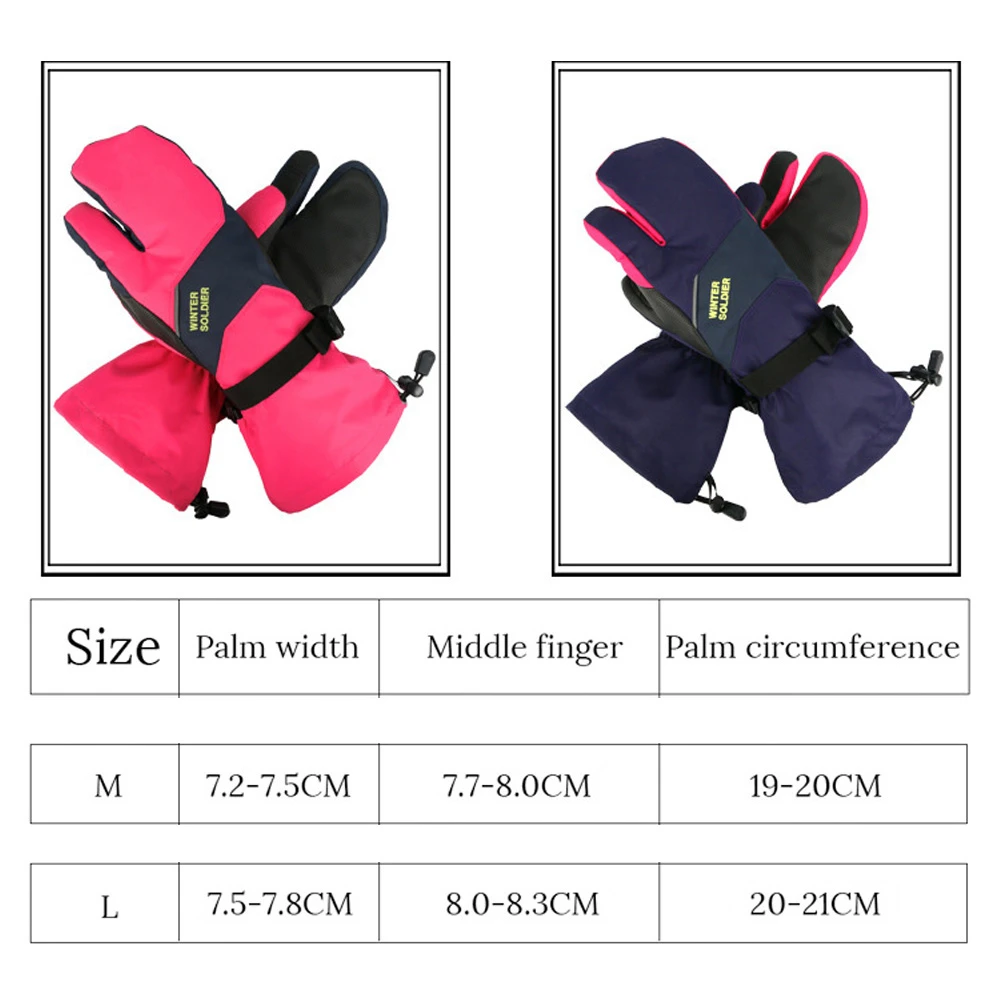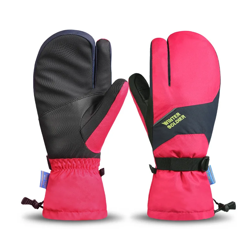Водонепроницаемые лыжные перчатки для сенсорных экранов, женские зимние толстые теплые лыжные перчатки для взрослых и подростков, ветрозащитные зимние варежки с 3 пальцами