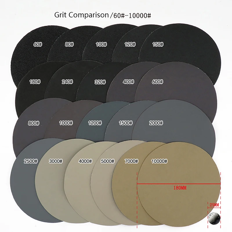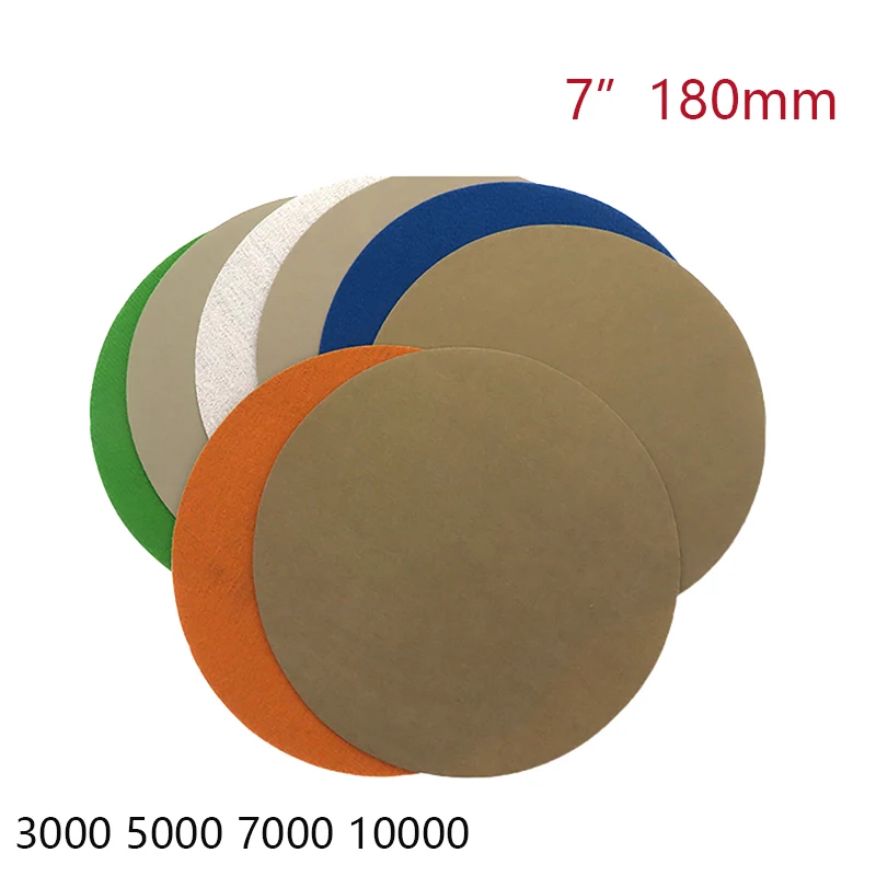 Самоклеящаяся круглая наждачная бумага, 7 дюймов, 180 мм, зернистость 3000, 5000, 7000, 10000, абразивный инструмент для полировки