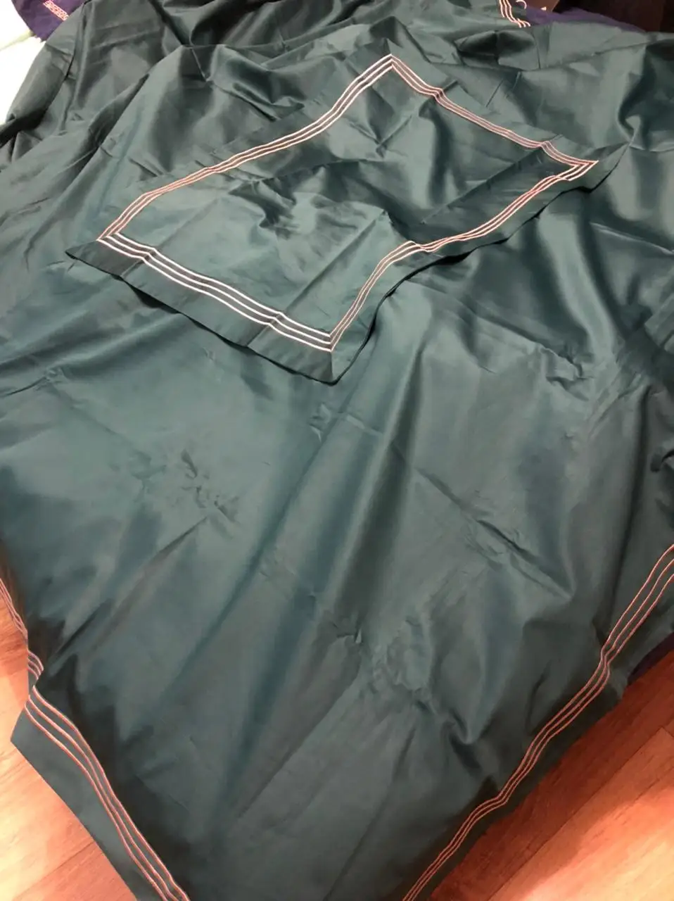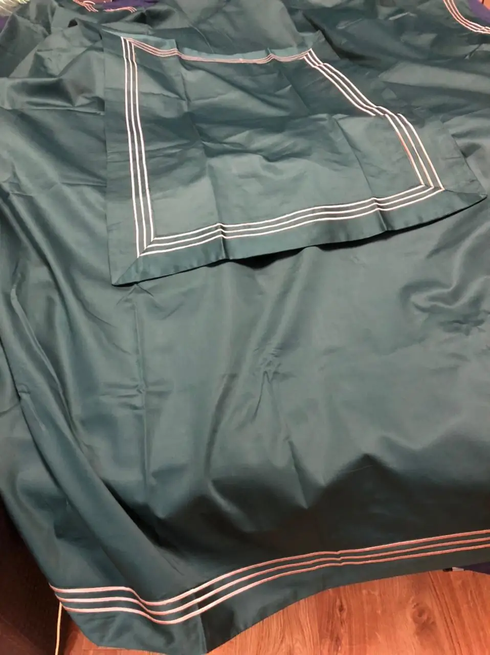 Комплект постельного белья из натурального хлопка, с вышивкой, темно-зеленого и синего цвета, 46 шт.